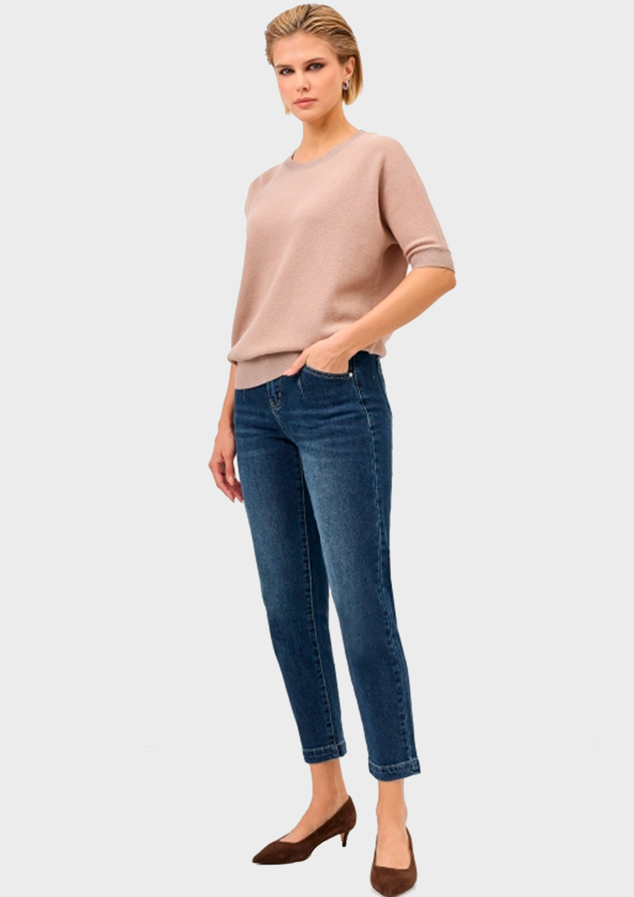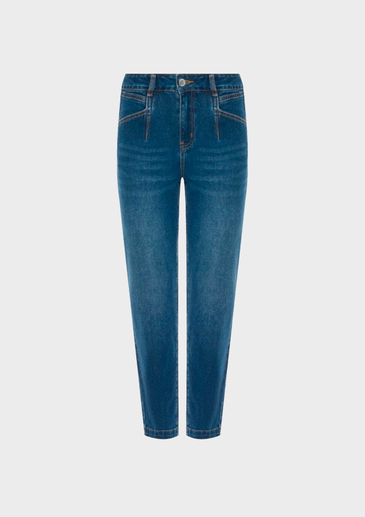Зауженные джинсы с деликатной варкой. Прямой силуэт слегка заужен к низу. Подрезы и вытачки обеспечивают лучшую посадку. Застежка на молнию и металлическую пуговицу. Пять карманов. В составе спандекс.