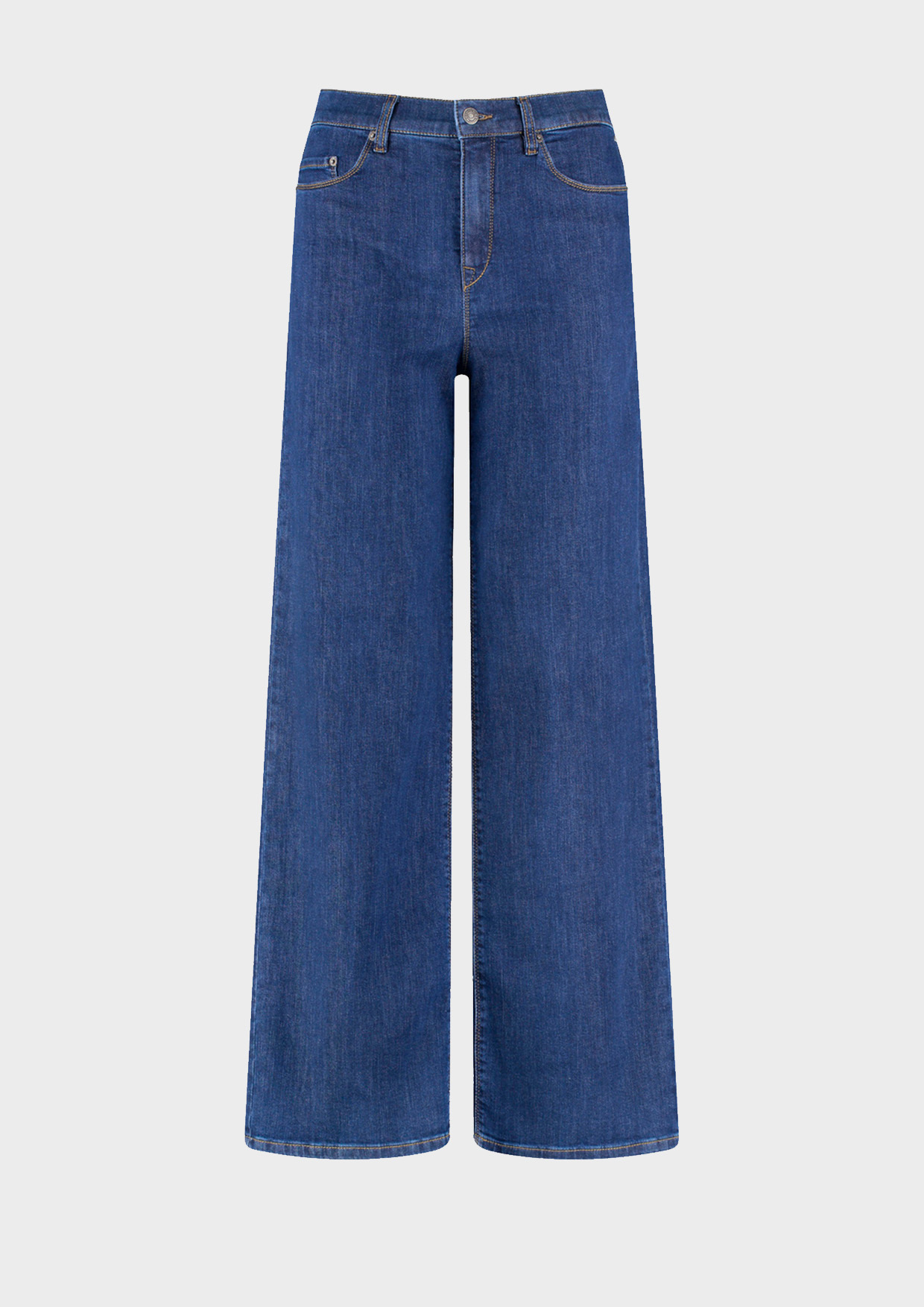 Верхняя часть оформлена в классическом джинсовом стиле с пятью карманами, поясом со шлёвками и застёжкой на молнию и пуговицу. Широкие брючины создают модный силуэт и подчёркивают актуальность модели. Идеальны для создания выразительных повседневных образов.