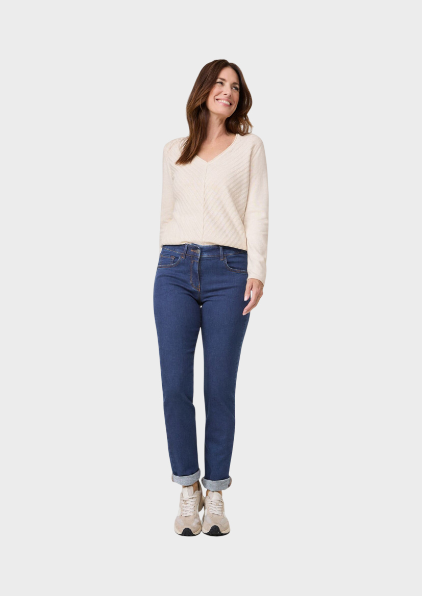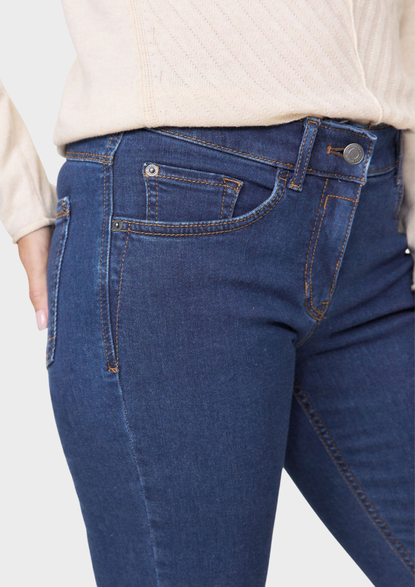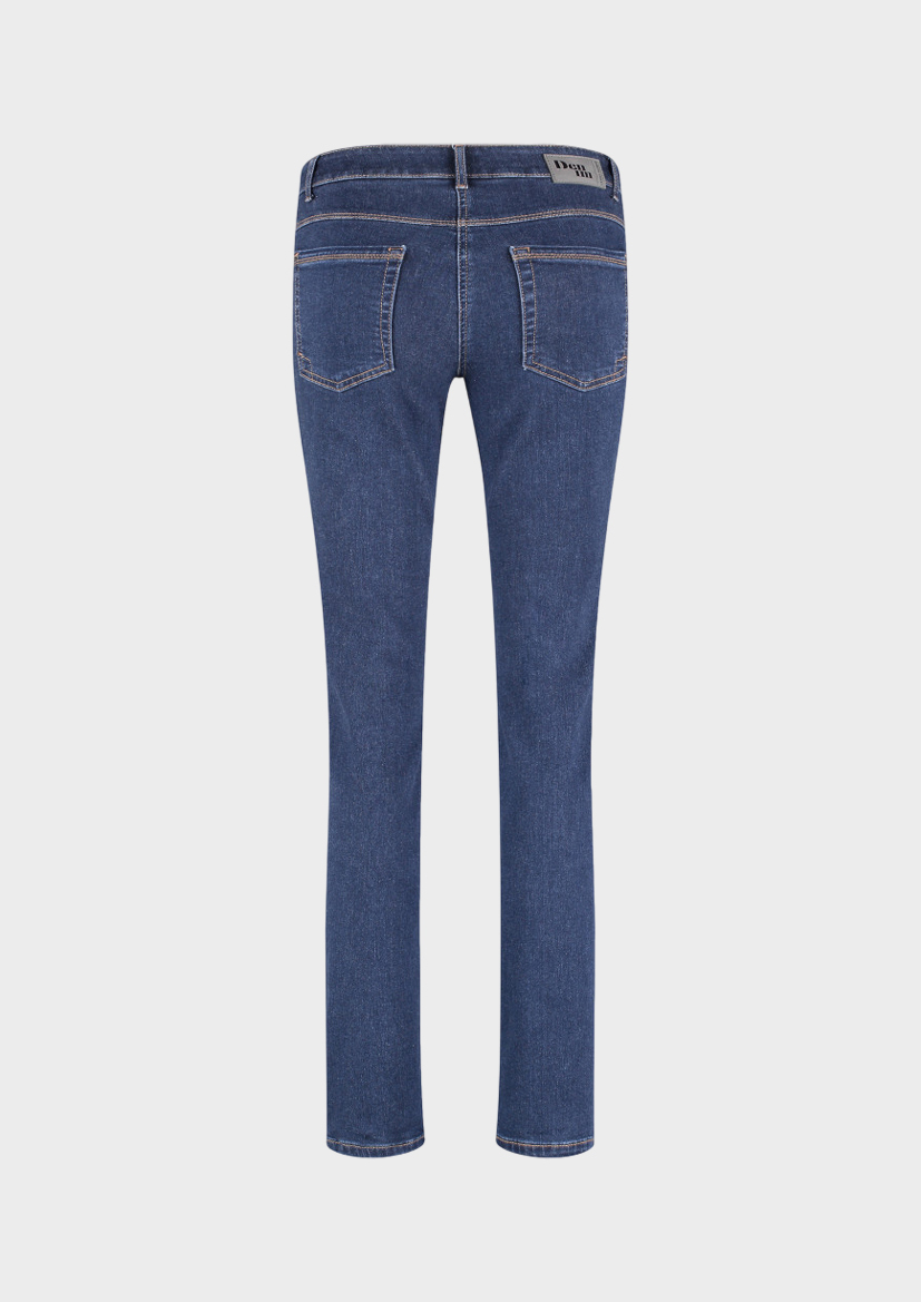 Зауженные джинсы полной длины облегающего кроя в бедрах. Джинсы выполнены из эластичного материала, который эффектно подчеркнет линию бедер. Плотная ткань хорошо держит форму и приятна к телу. Классическая длина создает утонченный силуэт, визуально вытягивая его.