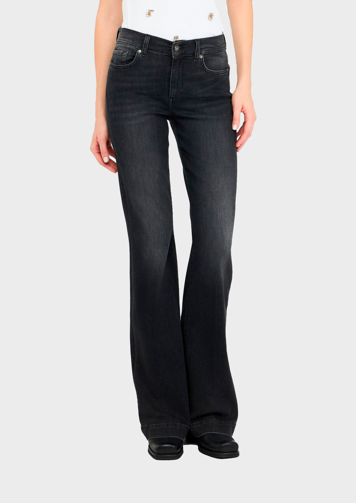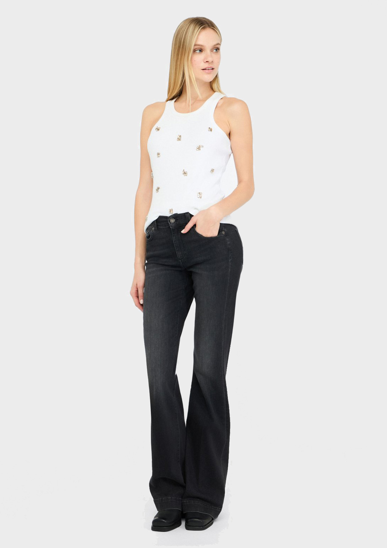Эти джинсы клёш от Liu Jo станут основой стильного образа! Черный цвет универсален и подходит ко всему. Удобная посадка благодаря составу ткани: комфортные 92% хлопка и 8% эластана позволят вам наслаждаться движением. Прочный материал сохранит форму и насыщенность цвета даже после многократных стирок. Идеальный выбор женщин, ценящих комфорт, качество и моду!