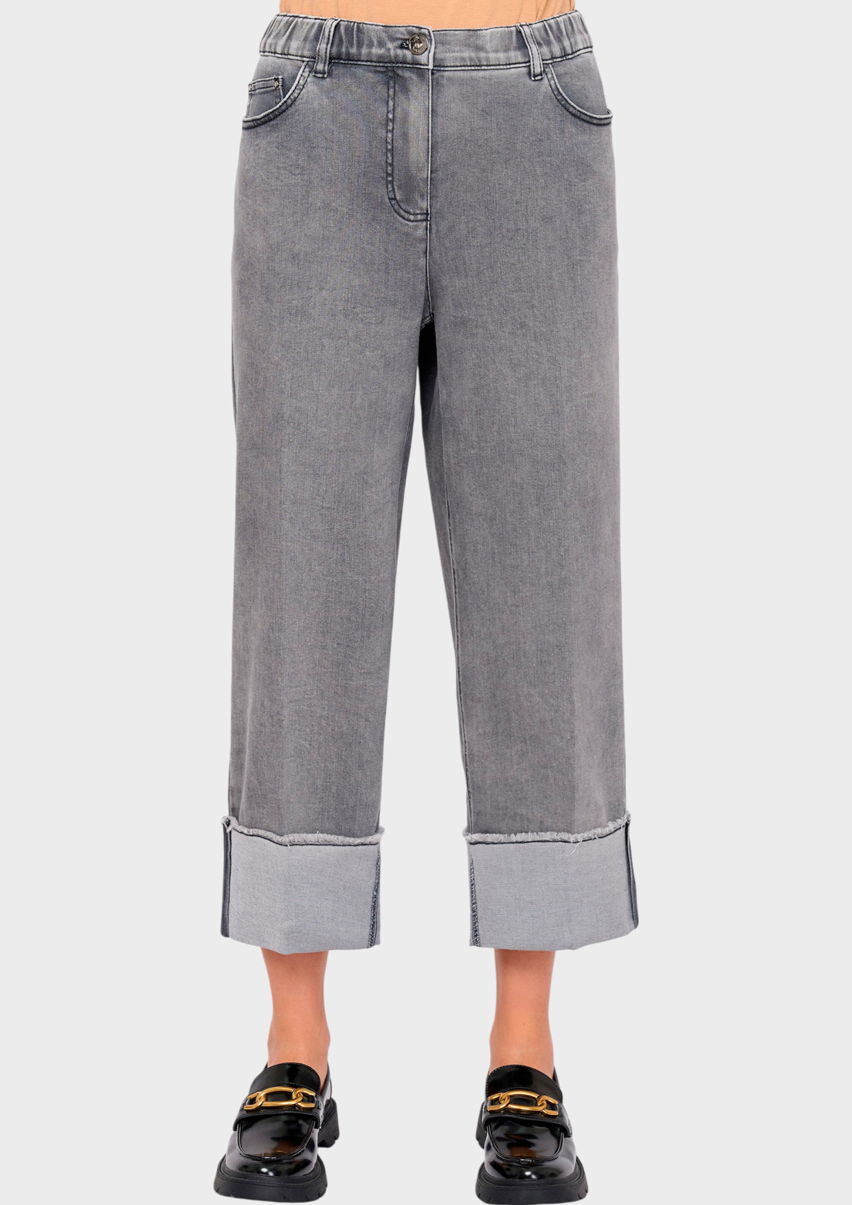 Идеальная середина между облеганием и свободой: средней посадки, универсальной длины с возможностью подгиба из-за наличия подворотов.