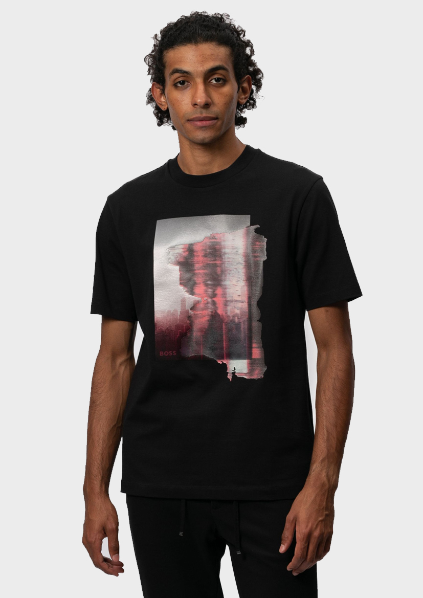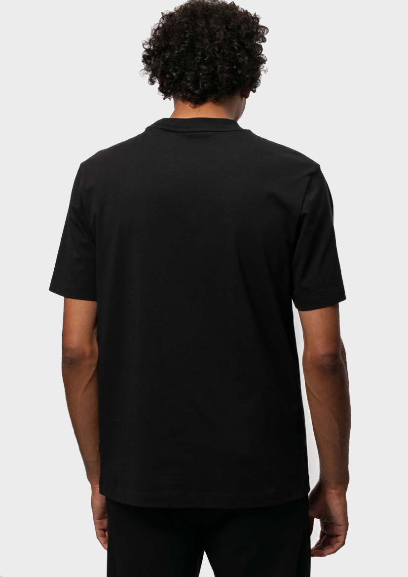 Мужская футболка BOSS – это идеальный выбор для тех, кто ценит комфорт и стиль. Выполненная из высококачественного 100% хлопка, она обеспечивает мягкость и свободу движений. Черный цвет универсален и легко сочетается с различными элементами гардероба, делая эту модель незаменимой частью базового набора одежды.
