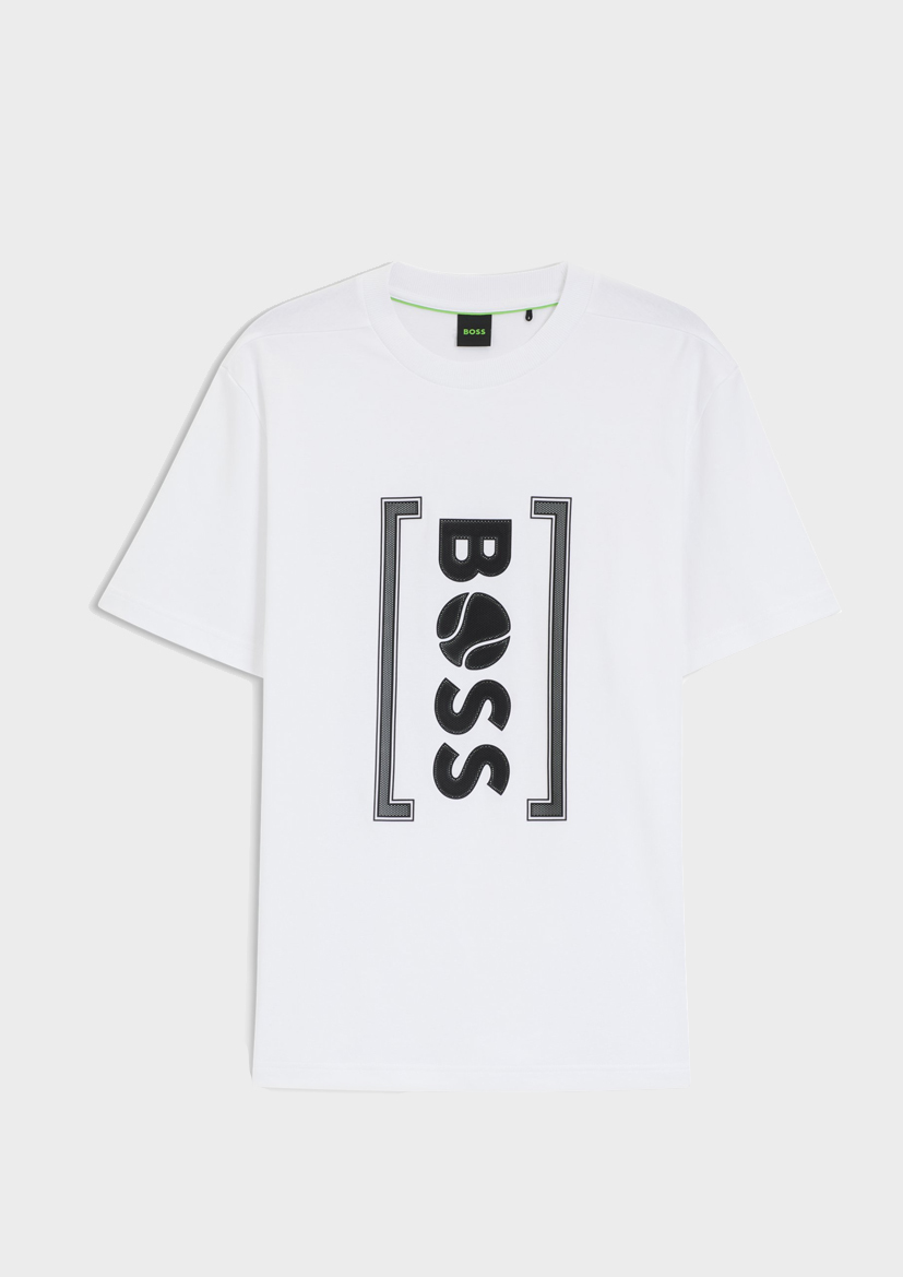 Эта дышащая мужская футболка BOSS, выполненная из сверхмягкого хлопка, украшена 3D-принтом в виде сетки в теннисном стиле.