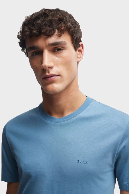 Стильная мужская футболка от бренда BOSS – идеальный выбор для вашего гардероба! Эта модель выполнена в элегантном голубом оттенке, который подчеркнет ваш статус и безупречный вкус. Прочный материал на основе натурального хлопка обеспечит комфорт даже при длительном ношении, а также сохранит свежесть и яркость цвета после множества стирок. Созданная специально для сезона осень-зима 2025/2026 гг., эта футболка станет универсальным элементом образа, подходящим как под пиджак или куртку, так и отдельно — подчёркивая вашу индивидуальность и чувство стиля! Добавьте её к своему гардеробу уже сейчас!