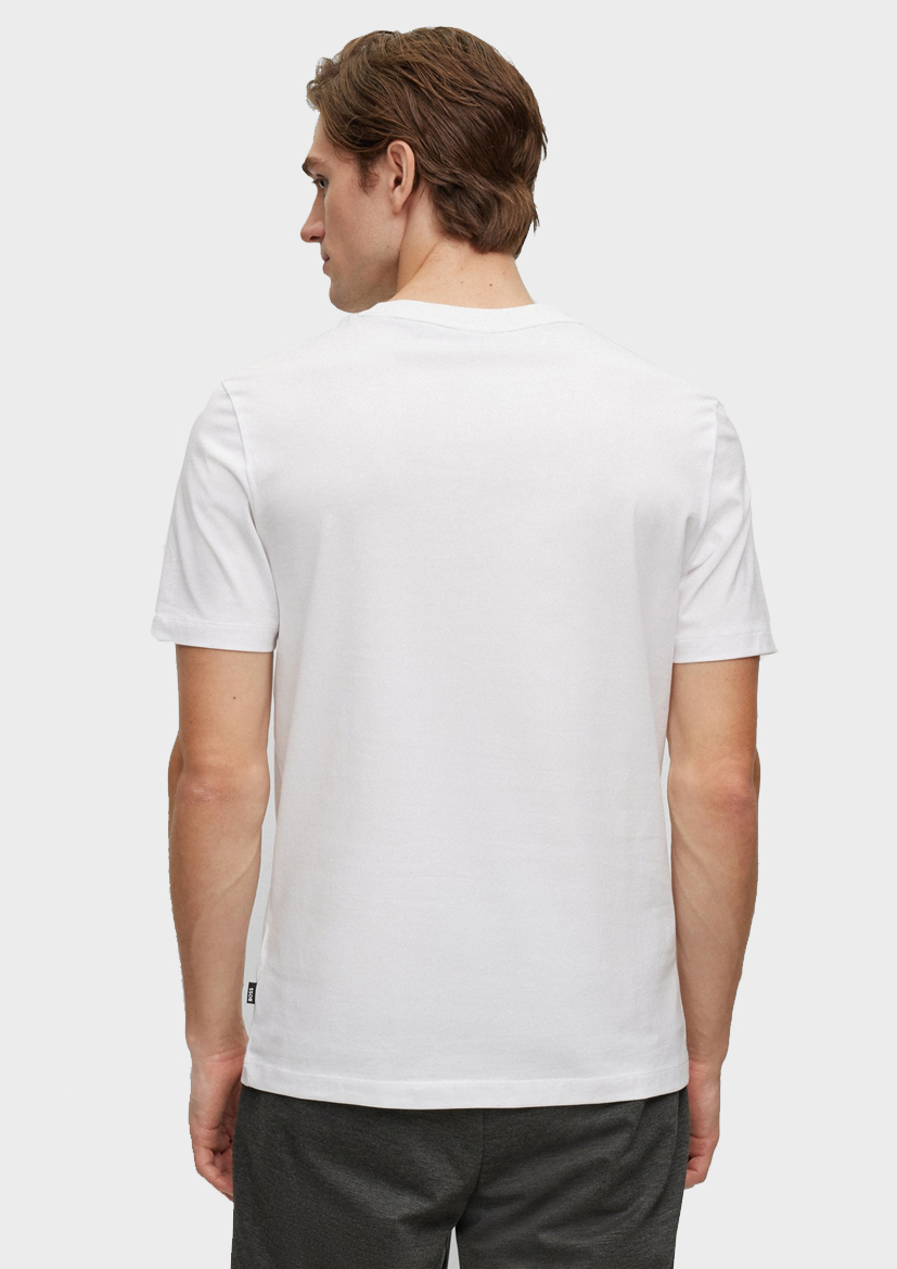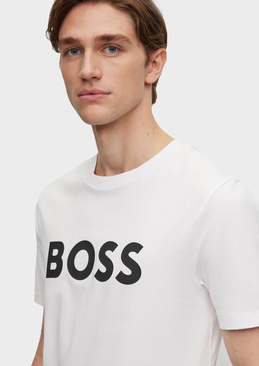 Фирменная футболка от BOSS прямого кроя из трикотажа с контрастным логотипом на груди.
