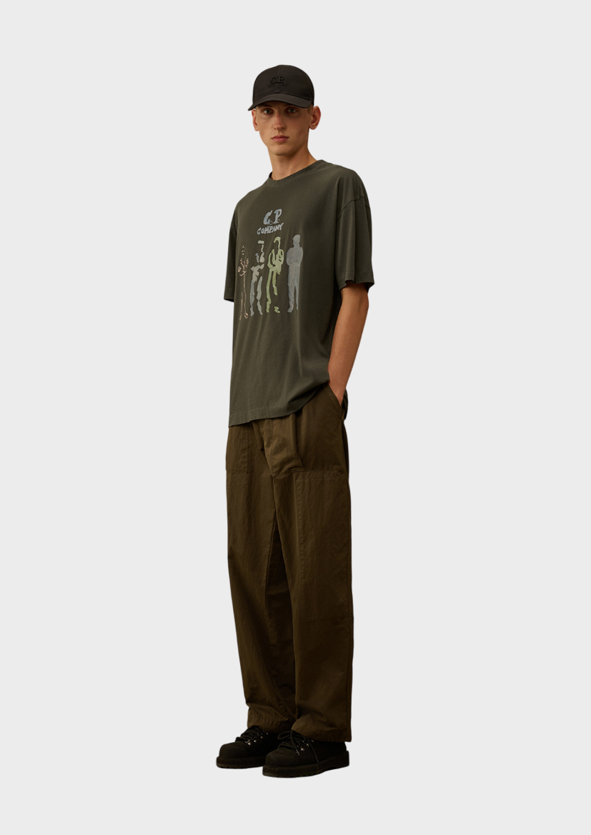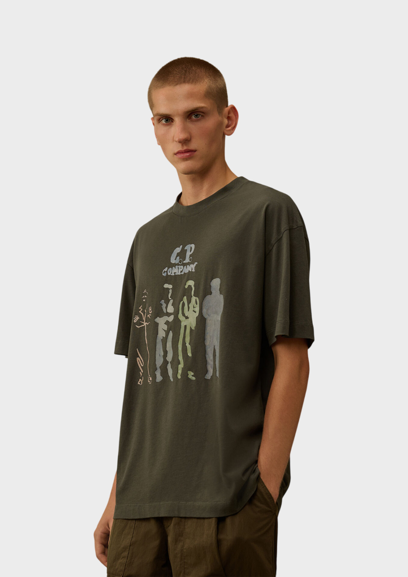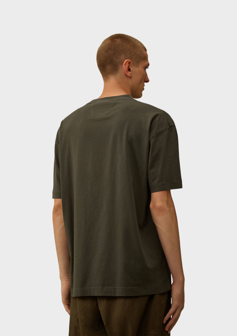 Мужская футболка C.P.Company тёмно-зелёного цвета из 100%-го хлопка. Сохраняется форма после стирки, приятна к телу. Идеальный выбор для повседневной носки и активного отдыха.