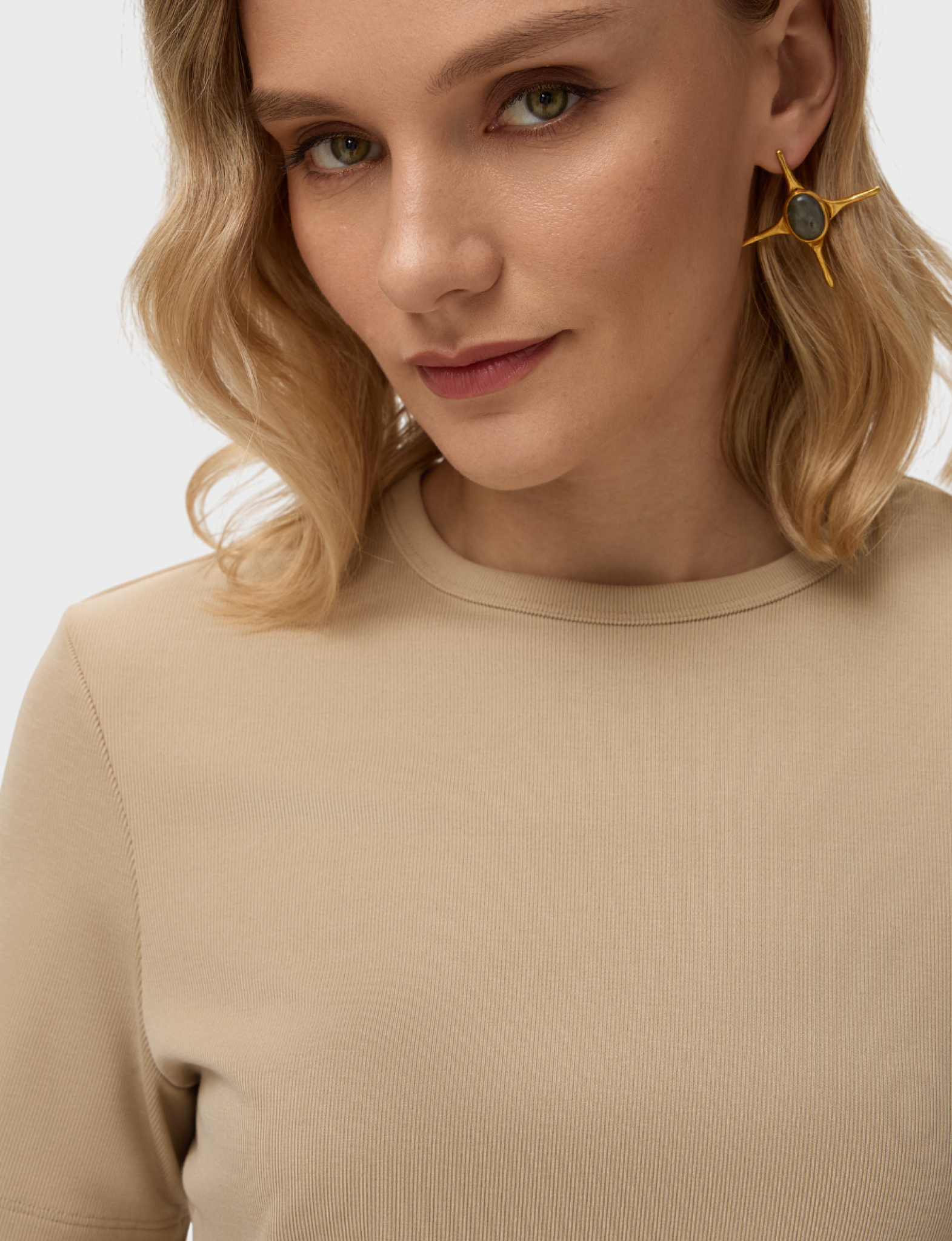 Женская футболка ELIS светло-бежевого цвета – идеальный выбор для вашего гардероба! Изящно подчеркивая фигуру, она станет основой стильного образа благодаря универсальному оттенку. Композиция материалов (66% вискозы, 29% полиэстера, 5% полиуретана) обеспечивает комфорт при носке, мягкость к телу и простоту ухода.
