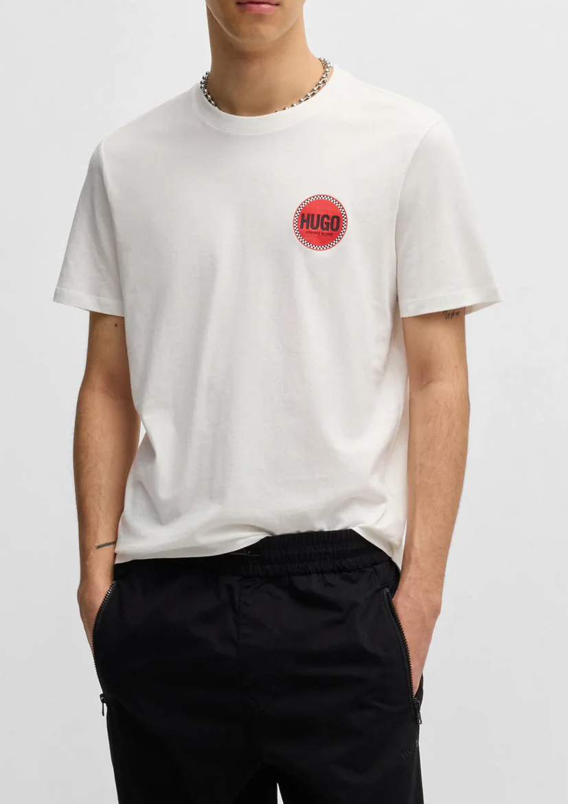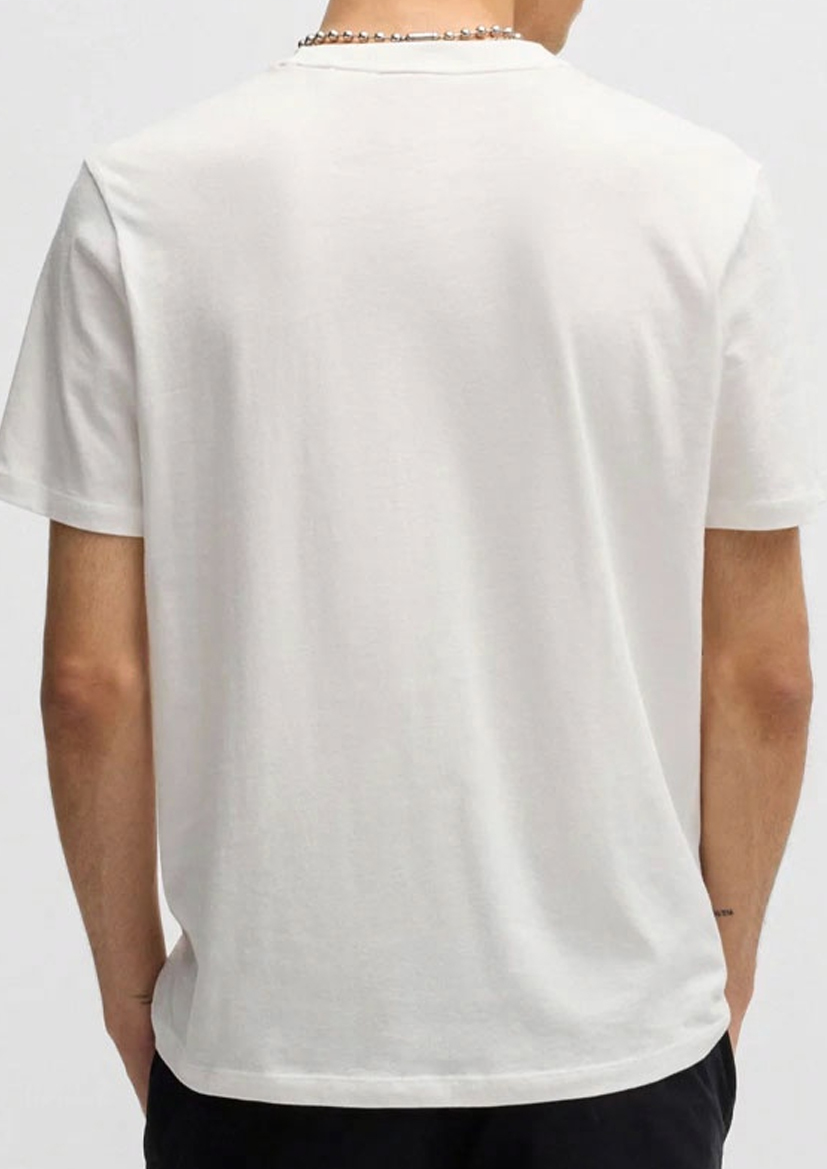 Мужская футболка HUGO молочного цвета – комфорт и стиль в одном изделии! Изготовлена из высококачественного 100% хлопка, который обеспечивает мягкость, воздухопроницаемость и долговечность ткани.