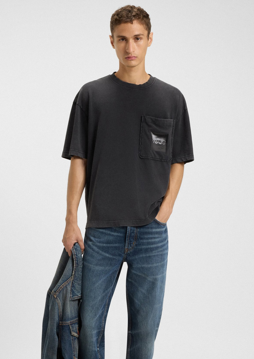 Благодаря просторному крою и принту с логотипом HUGO, эта мужская футболка создает непринужденный образ. Изготовлена из мягкого хлопкового трикотажа.