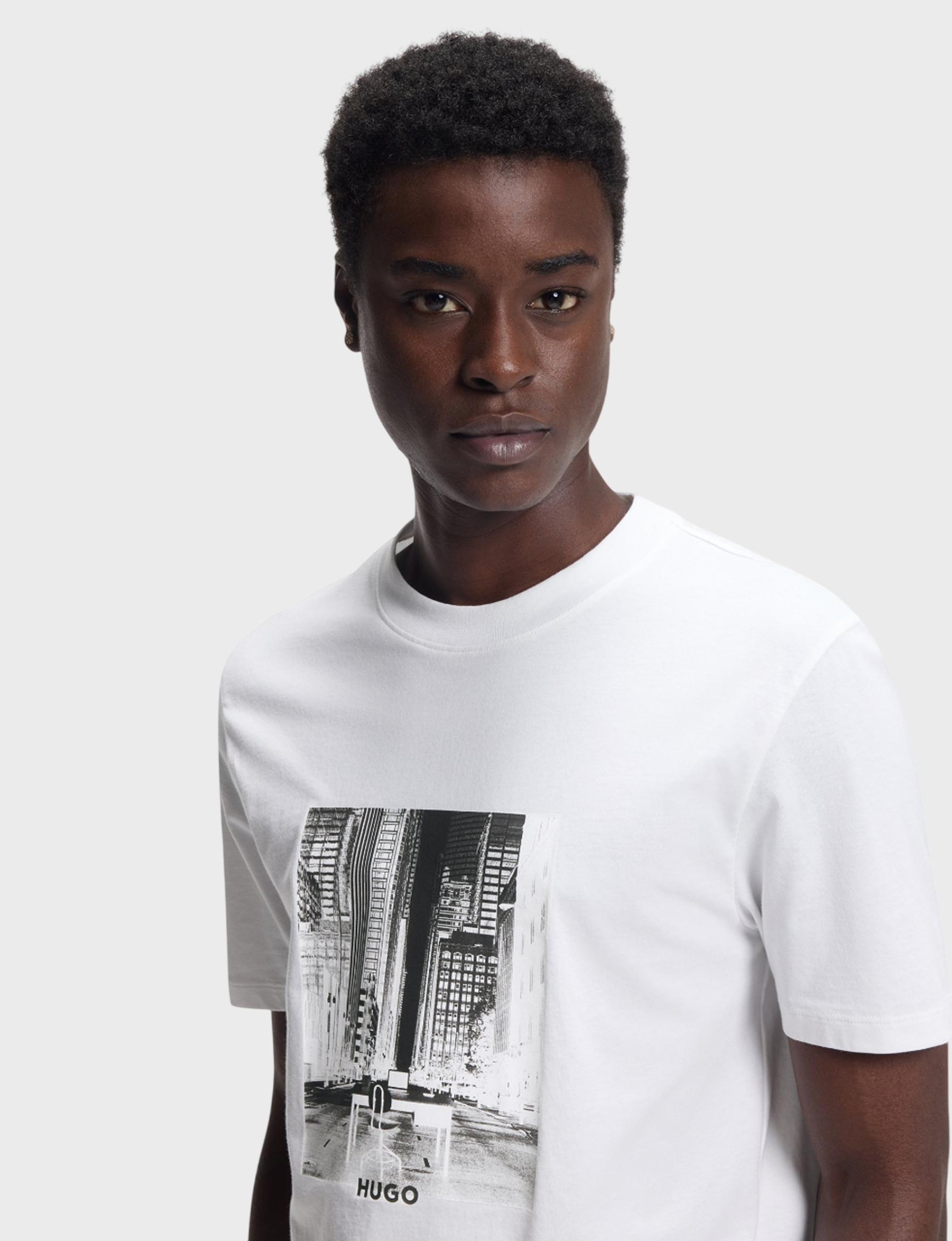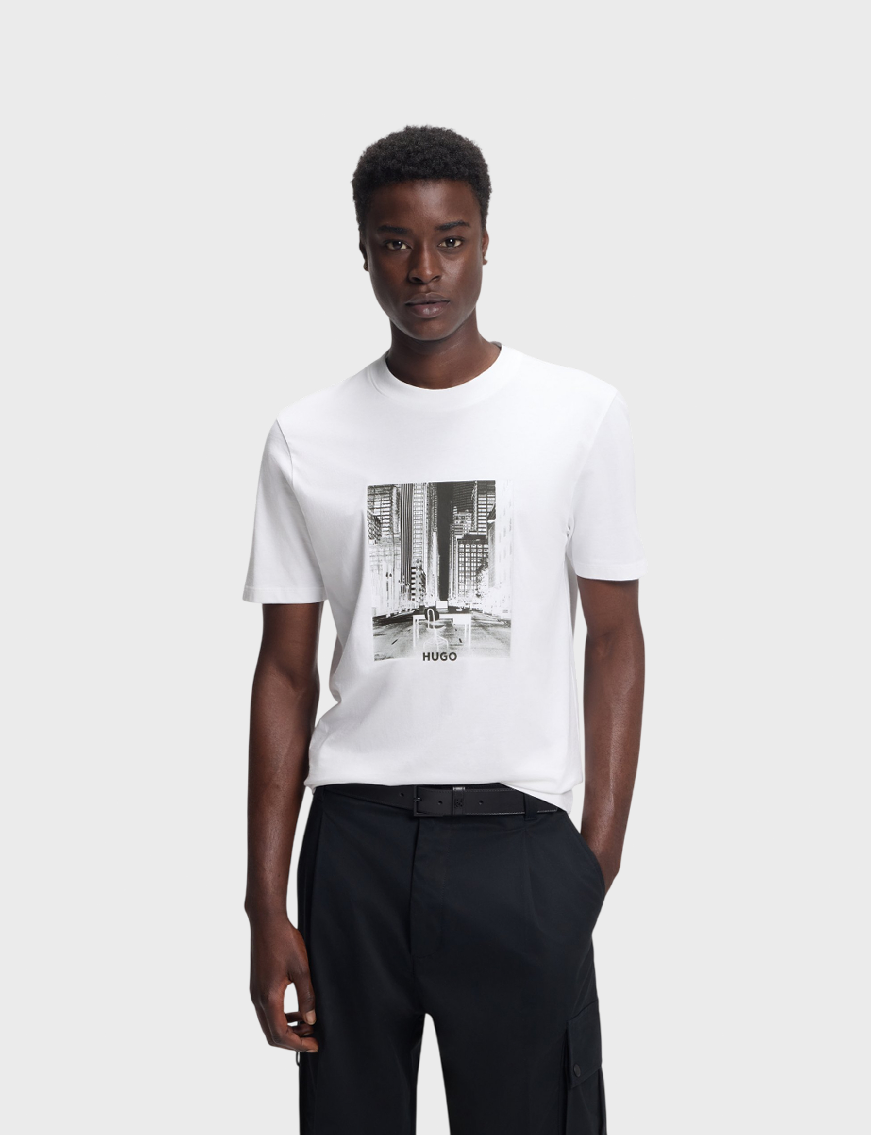 Футболка HUGO Deyss – Изготовленная из 100% хлопка, она подарит вам комфорт и свободу движений. Мягкая текстура и молочный цвет делают её универсальным элементом гардероба.