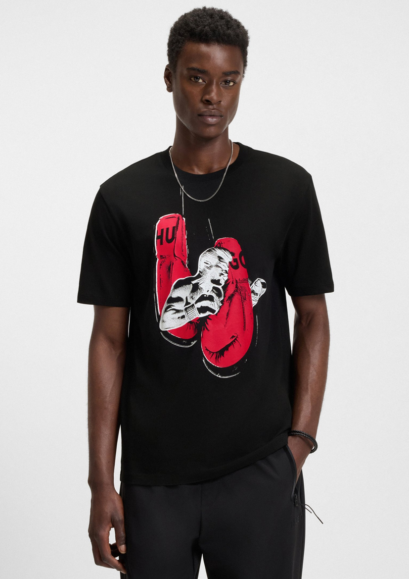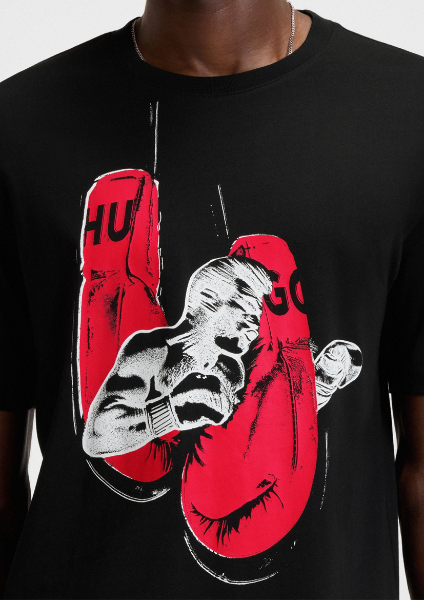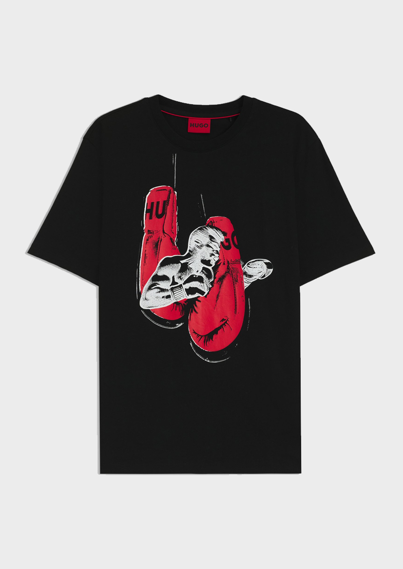 Дополните свой повседневный образ этой футболкой HUGO Menswear с принтом, вдохновленным миром бокса. Прямой крой. Выполнена из дышащего хлопкового трикотажа