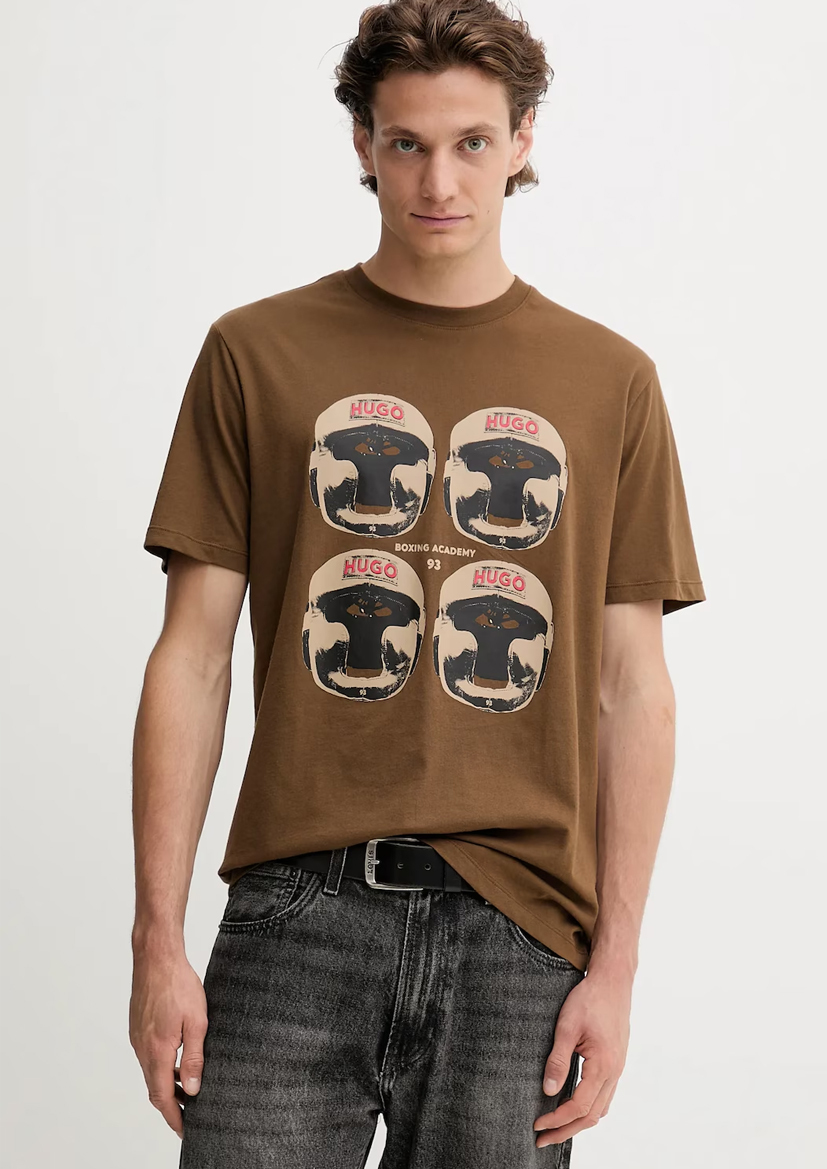 Мужская футболка Hugo Diboxer коричневого цвета изготовлена из 100% хлопка, что обеспечивает комфорт при носке и долговечность материала. Благодаря этому изделию вы всегда будете выглядеть стильно и уверенно – идеальный выбор для повседневного гардероба.