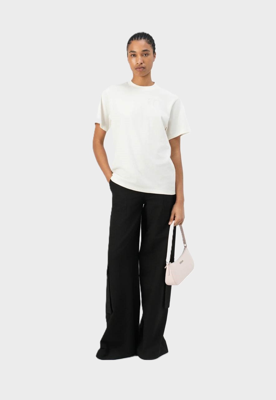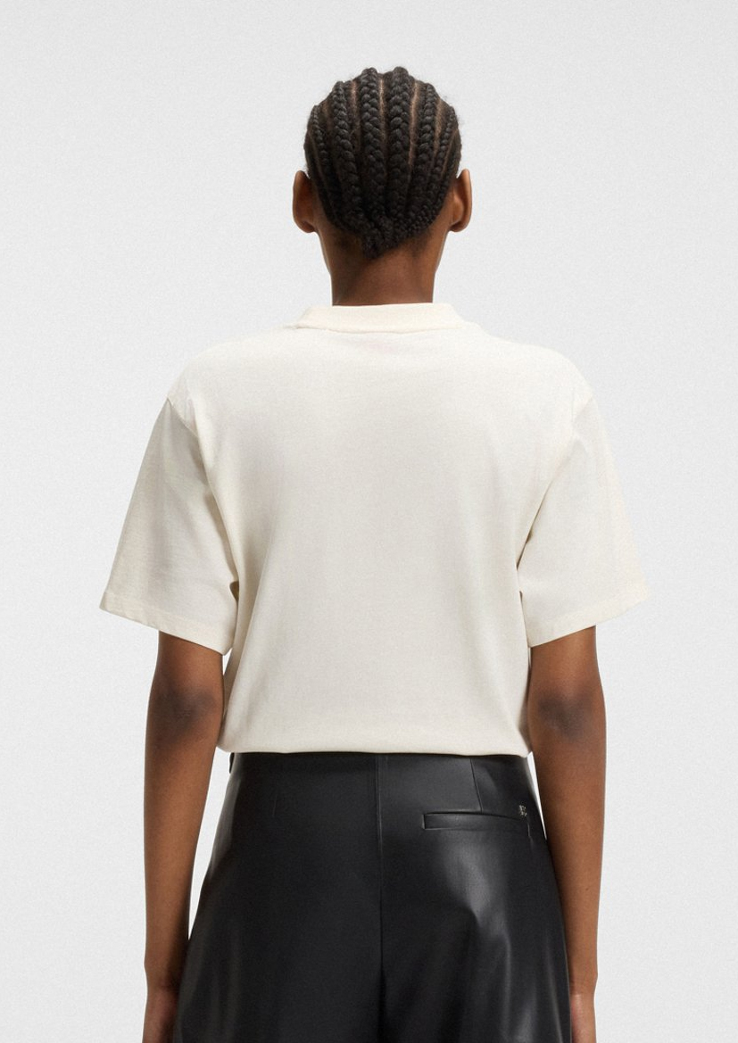 Женская футболка HUGO, выполненная из дышащего хлопкового трикотажа, украшена вышитой монограммой. Легкий свободный крой.