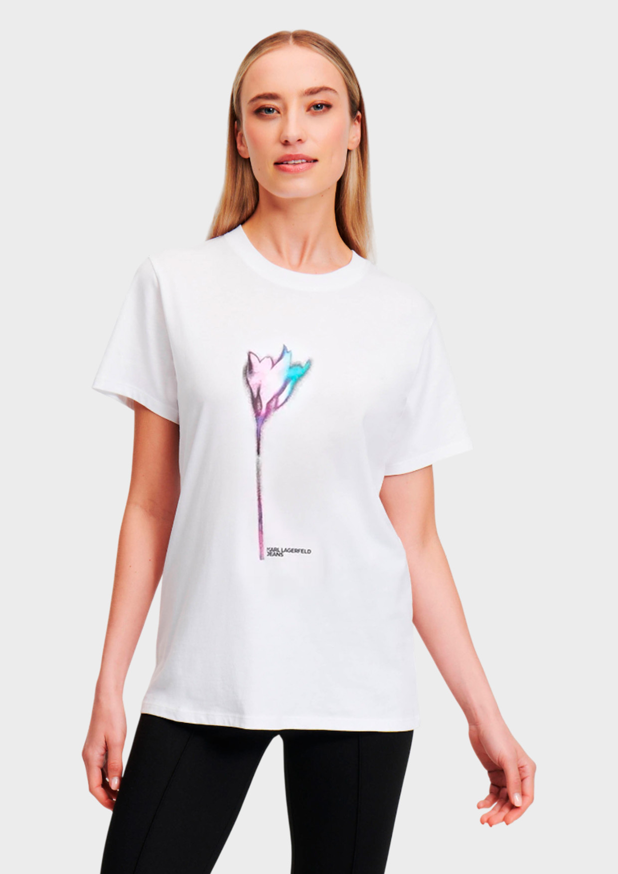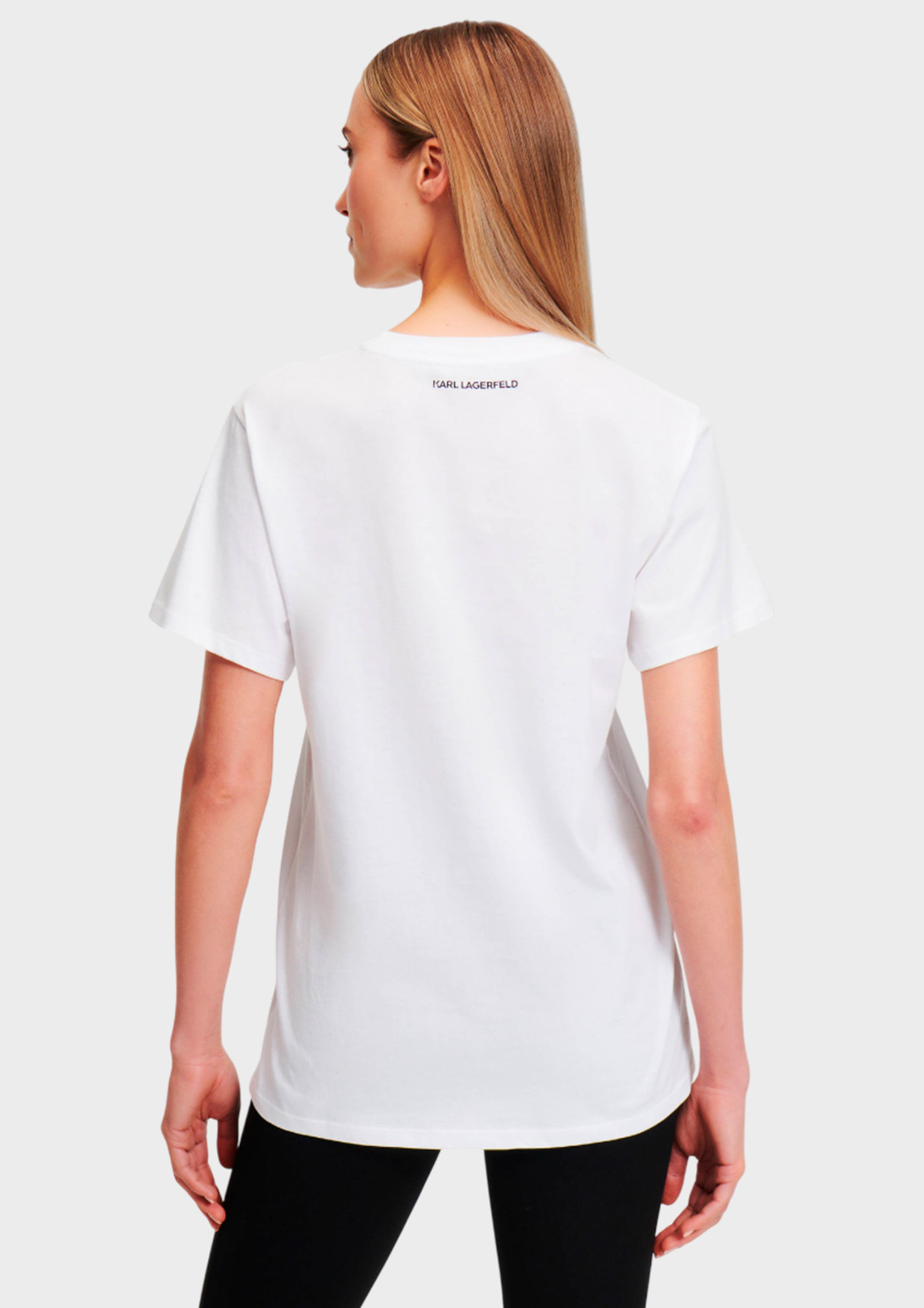 Белая футболка Karl Lagerfeld Jeans — стильная основа вашего гардероба! Она из 100%-го хлопка подарит комфорт весь день, а принт подчеркнёт ваш безупречный вкус.