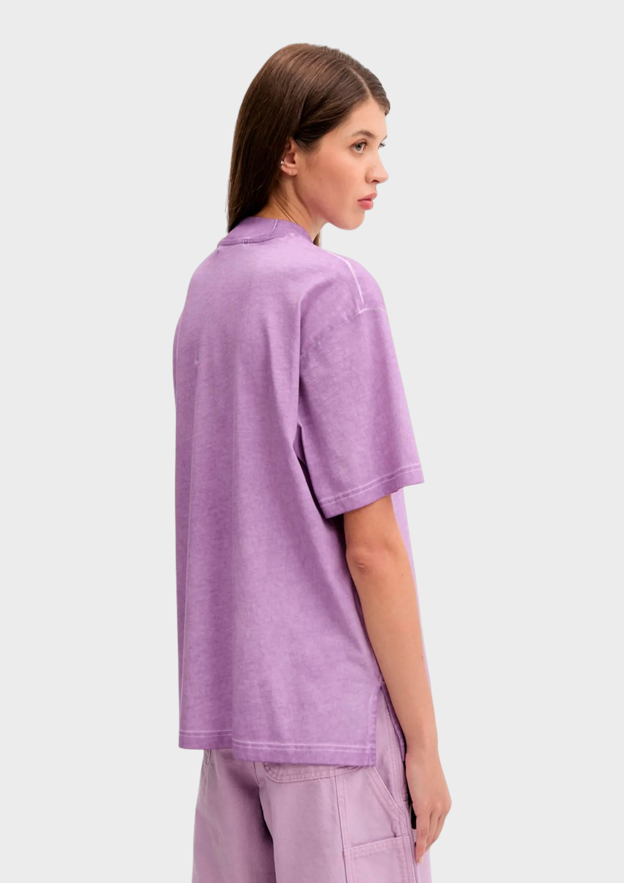 Свободный крой подчеркивает индивидуальность и комфорт, а сиреневый цвет добавляет образу изысканности. Минимализм логотипа бренда делает вещь стильной без излишней вычурности.