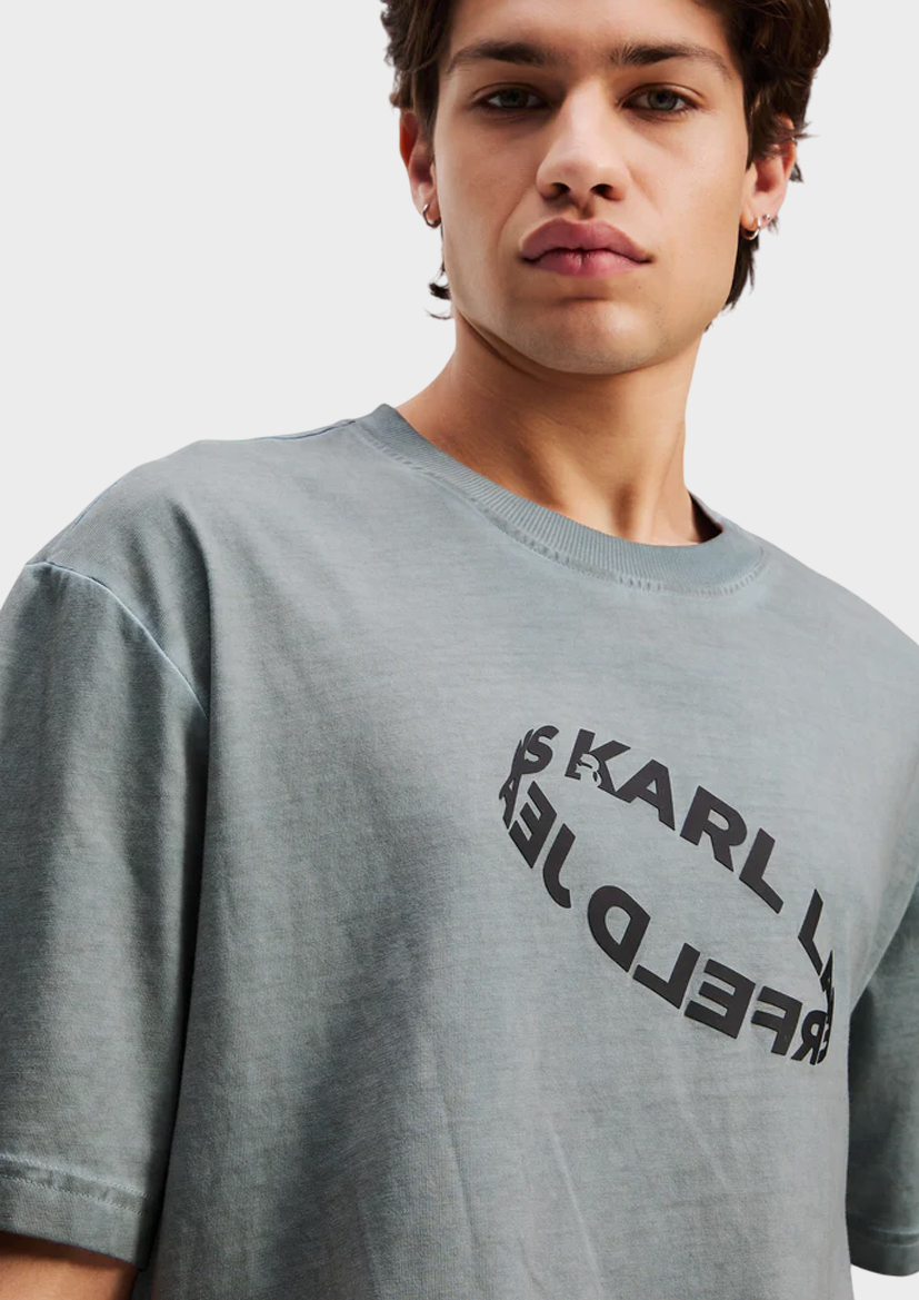 Серая футболка Karl Lagerfeld Jeans! Идеальная посадка по фигуре, выполнена из качественного 100%-го хлопка — дарит свободу движений и позволяет коже дышать. Оптимальный выбор для ежедневного ношения и стильных образов.