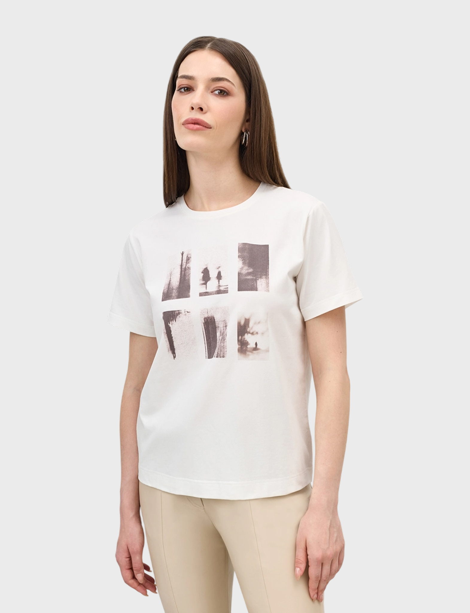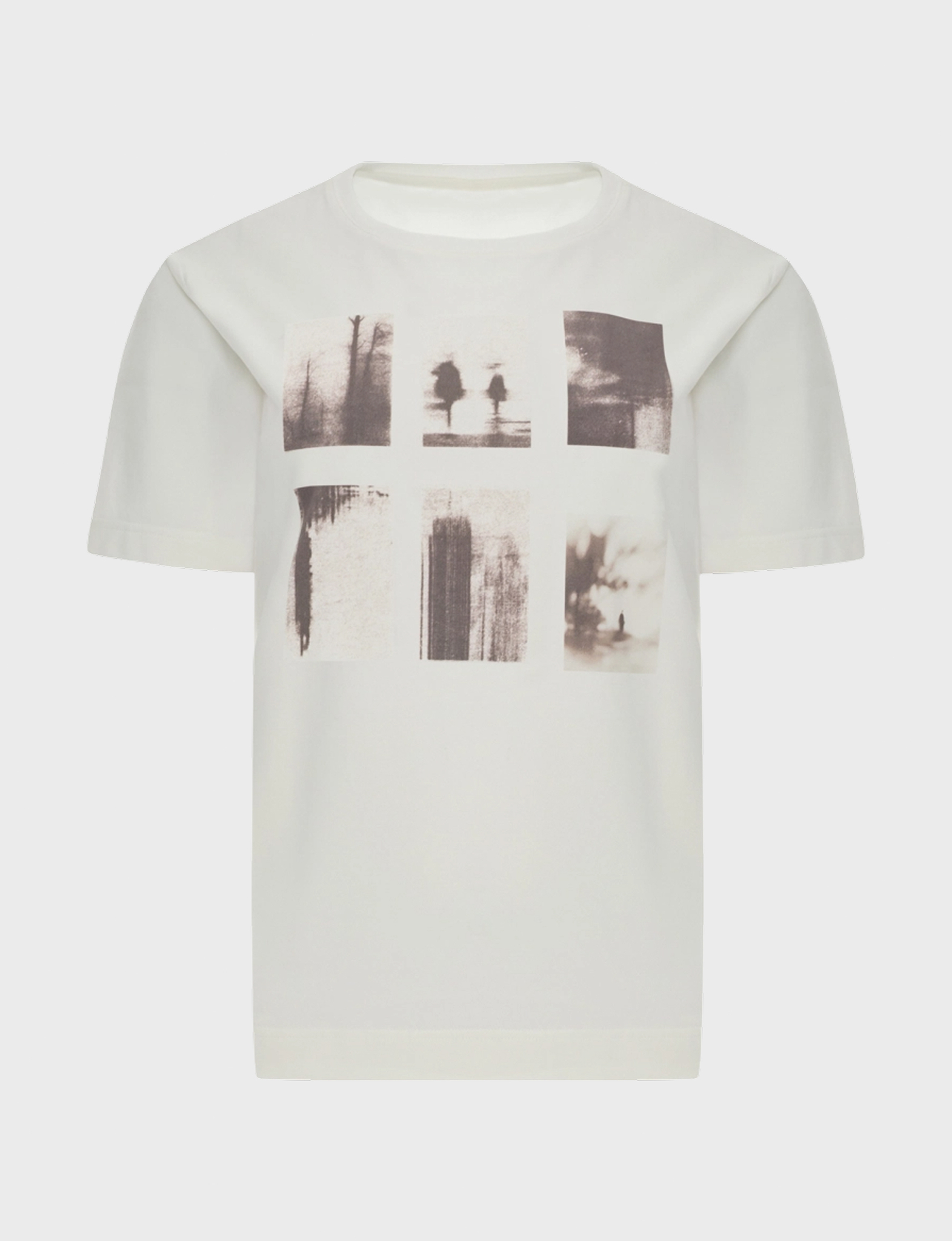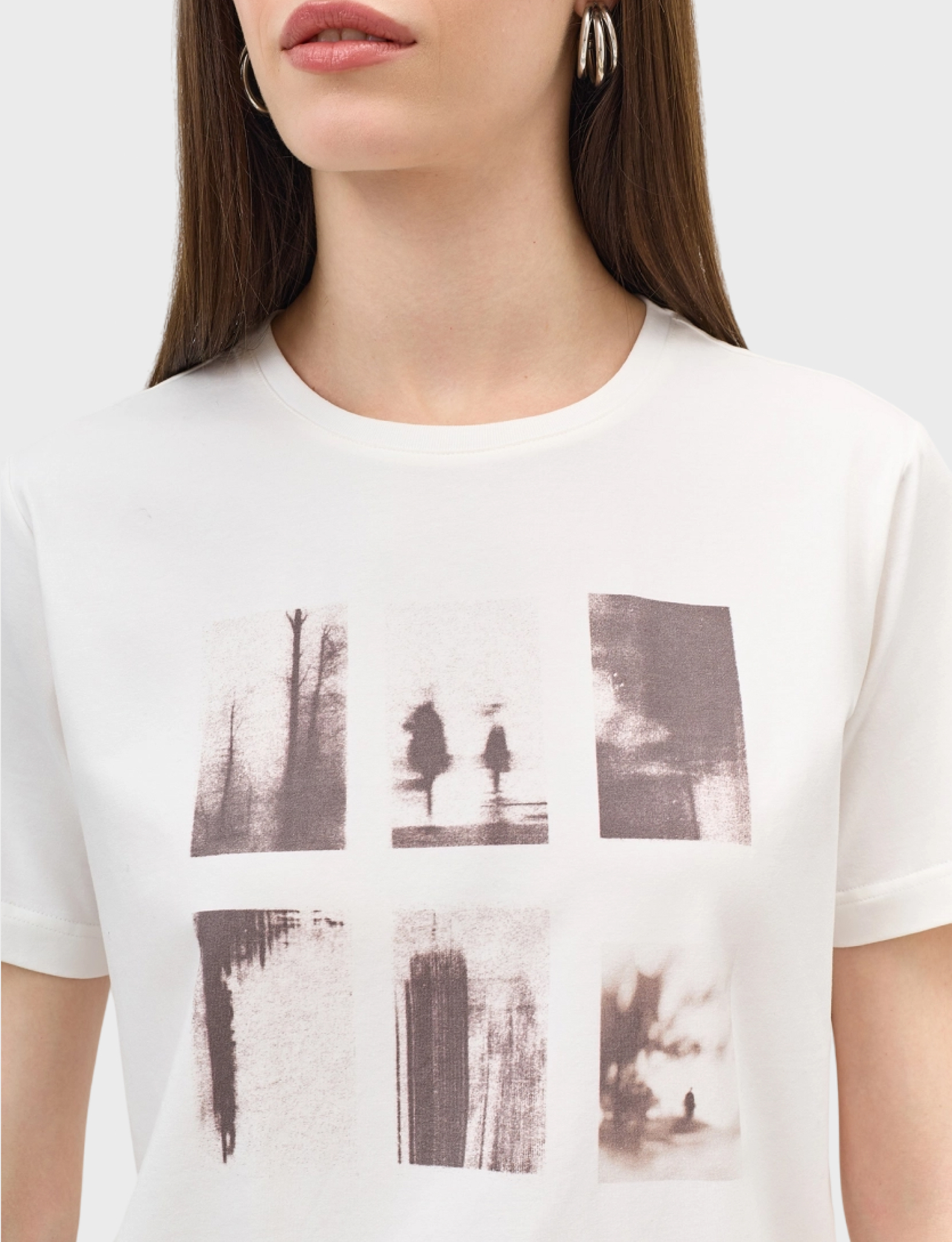 Футболка из эластичного хлопка с минималистичным фотопринтом. Прямой силуэт. Круглый вырез. Короткий рукав.