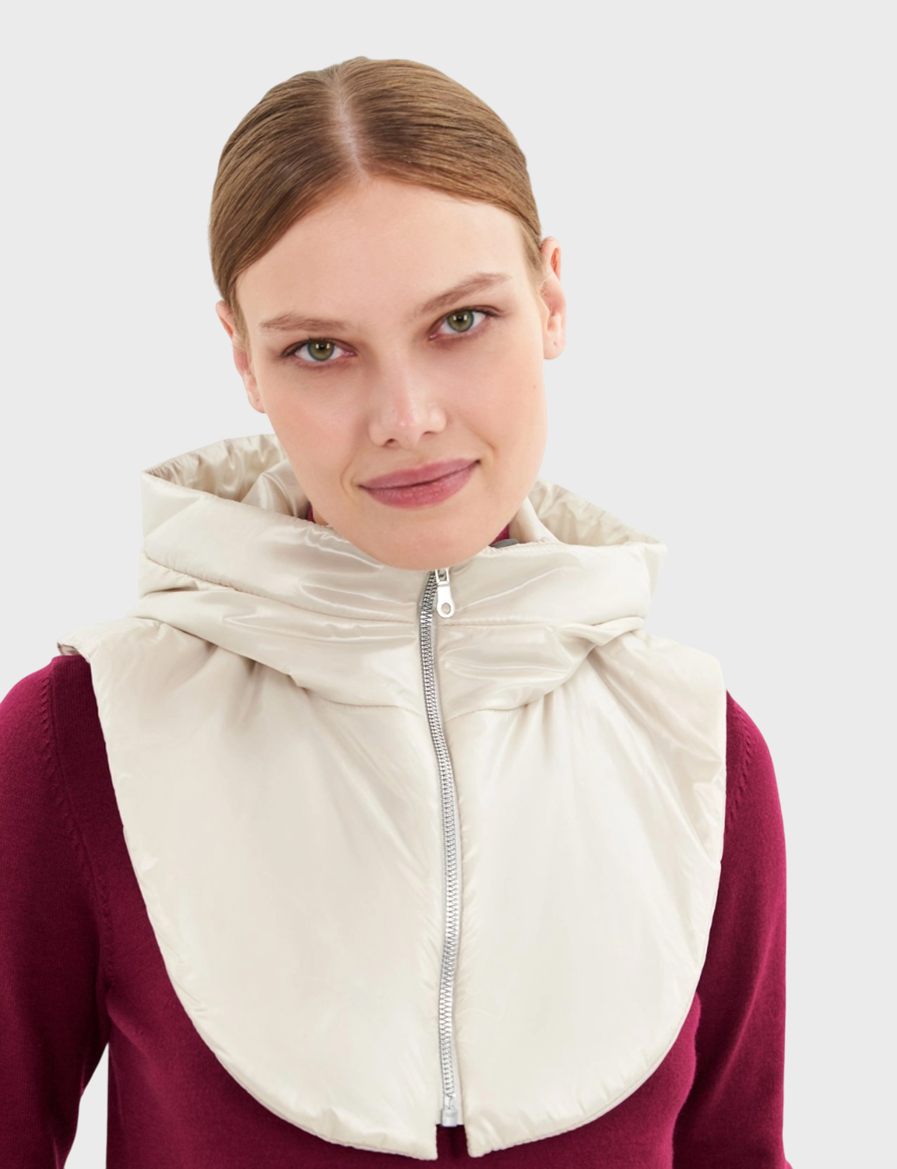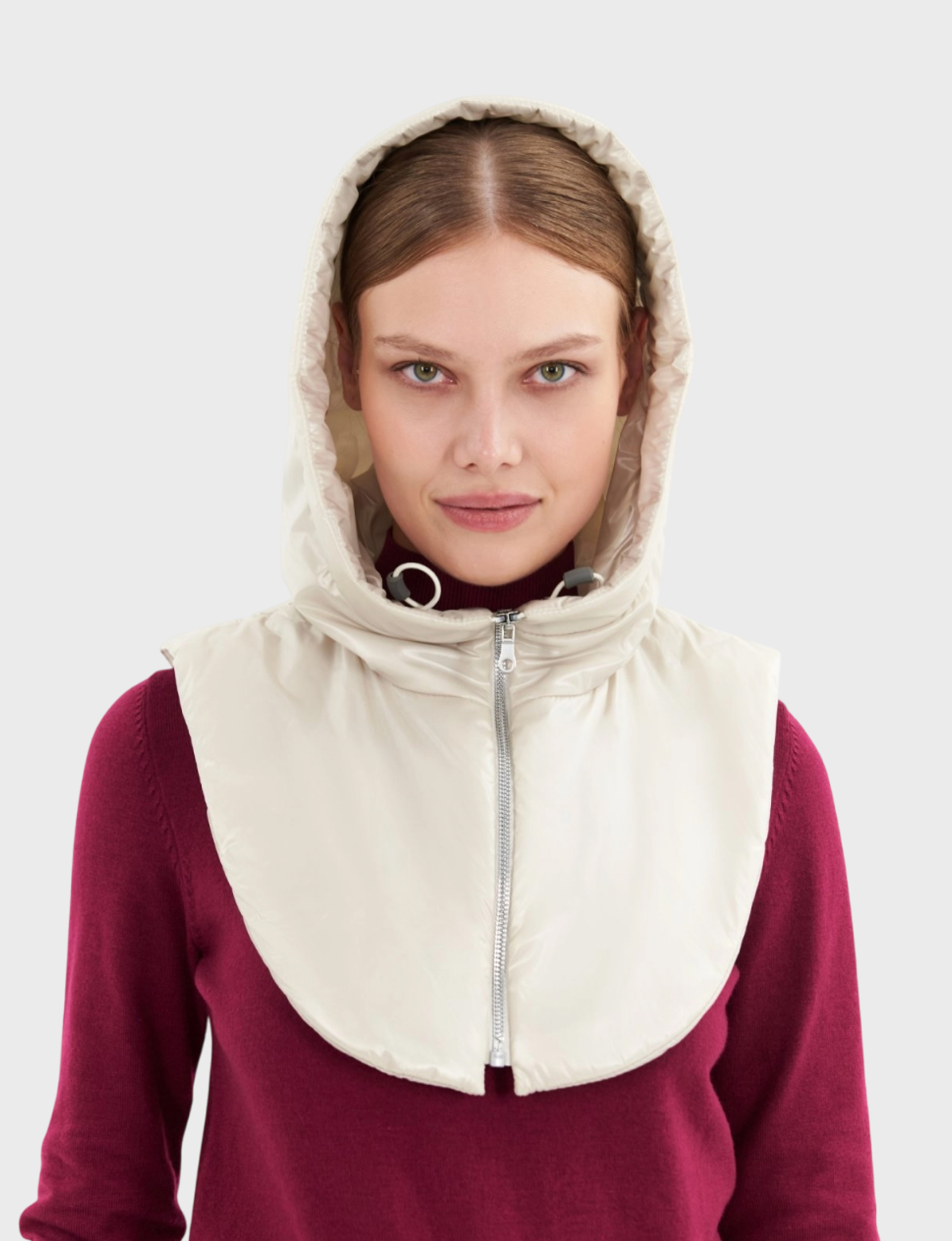 «Pompa» — элегантность и комфорт в каждой детали! Этот стильный женский капюшон светло-бежевого цвета станет вашим лучшим другом в прохладную погоду. Изготовлен из качественного 100% полиэстера, который обеспечивает идеальную защиту от ветра и сохраняет тепло. Удобен в носке, легко стирается и быстро сохнет.
