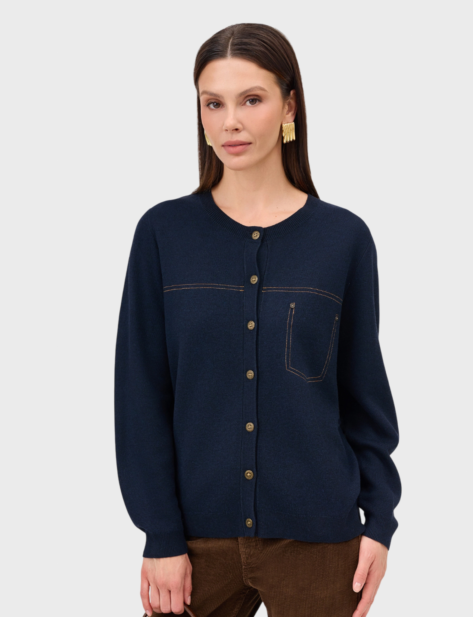 Кардиган BULMER – идеален для женщин, предпочитающих комфорт и стиль! Вискозная ткань (50%) гарантирует мягкость и приятность к телу, а добавление акрила (44%) обеспечивает долговечность и сохранение формы. Тёмно-синяя палитра подходит ко всему гардеробу, легко комбинируется с базовыми вещами. Шесть процентов шерсти придают изделию элегантную текстуру и уют.