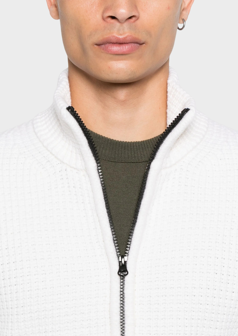 Мужской кардиган C.P.Company белого цвета — ваш стильный спутник в мире комфорта! Преимущество модели в идеальном сочетании шерсти (80%) и полиамида (20%), обеспечивающем тепло, мягкость и долговечность. Изящно подчеркнет вашу индивидуальность, добавив нотку элегантности в любой образ. Удобен в носке и прост в уходе. Станет незаменимым элементом гардероба как для повседневных прогулок, так и деловых встреч.