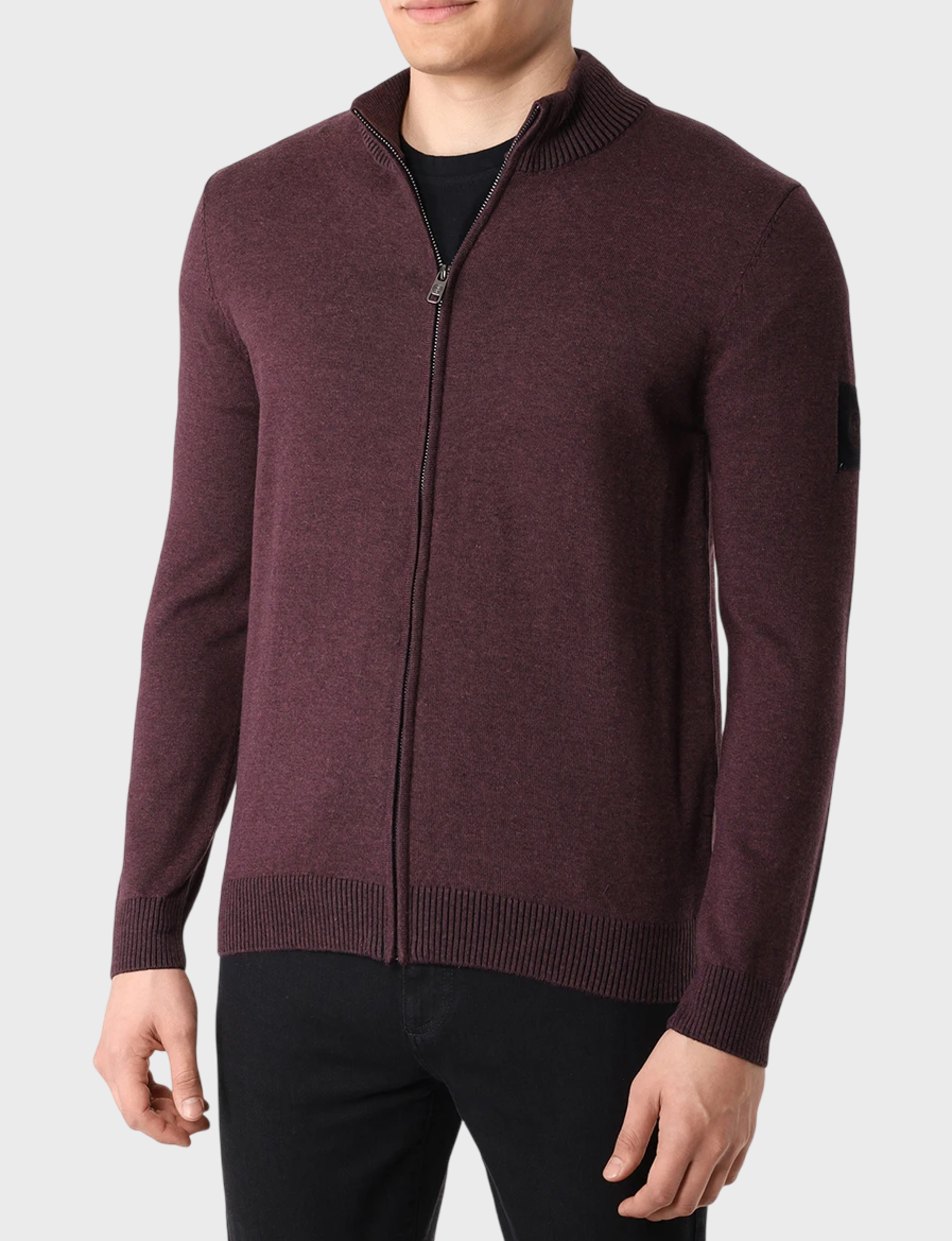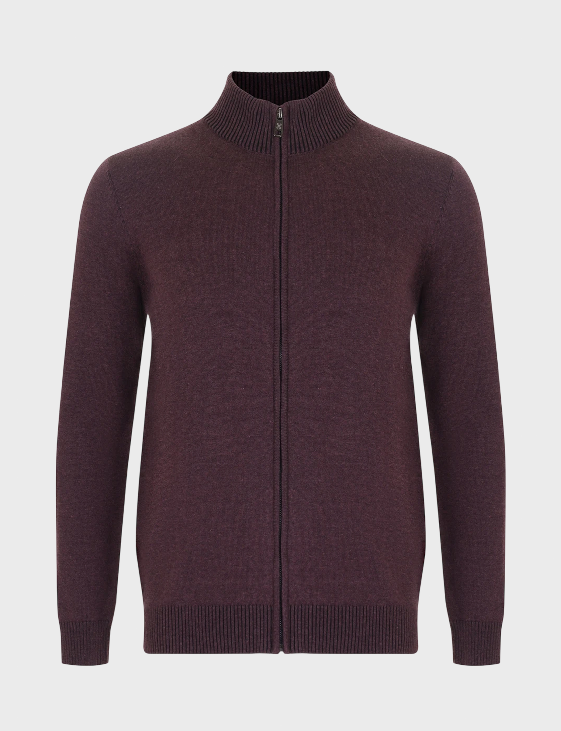 Кардиган из мягкого хлопка винного оттенка от CUDGI. Модель полуприлегающего силуэта с длинными рукавами, рельефными манжетами, поясом и высоким воротником, логотипом бренда на плече, застежкой на молнию. Кардиган дополнит повседневные образы с джинсами и базовой футболкой или тонким трикотажем.