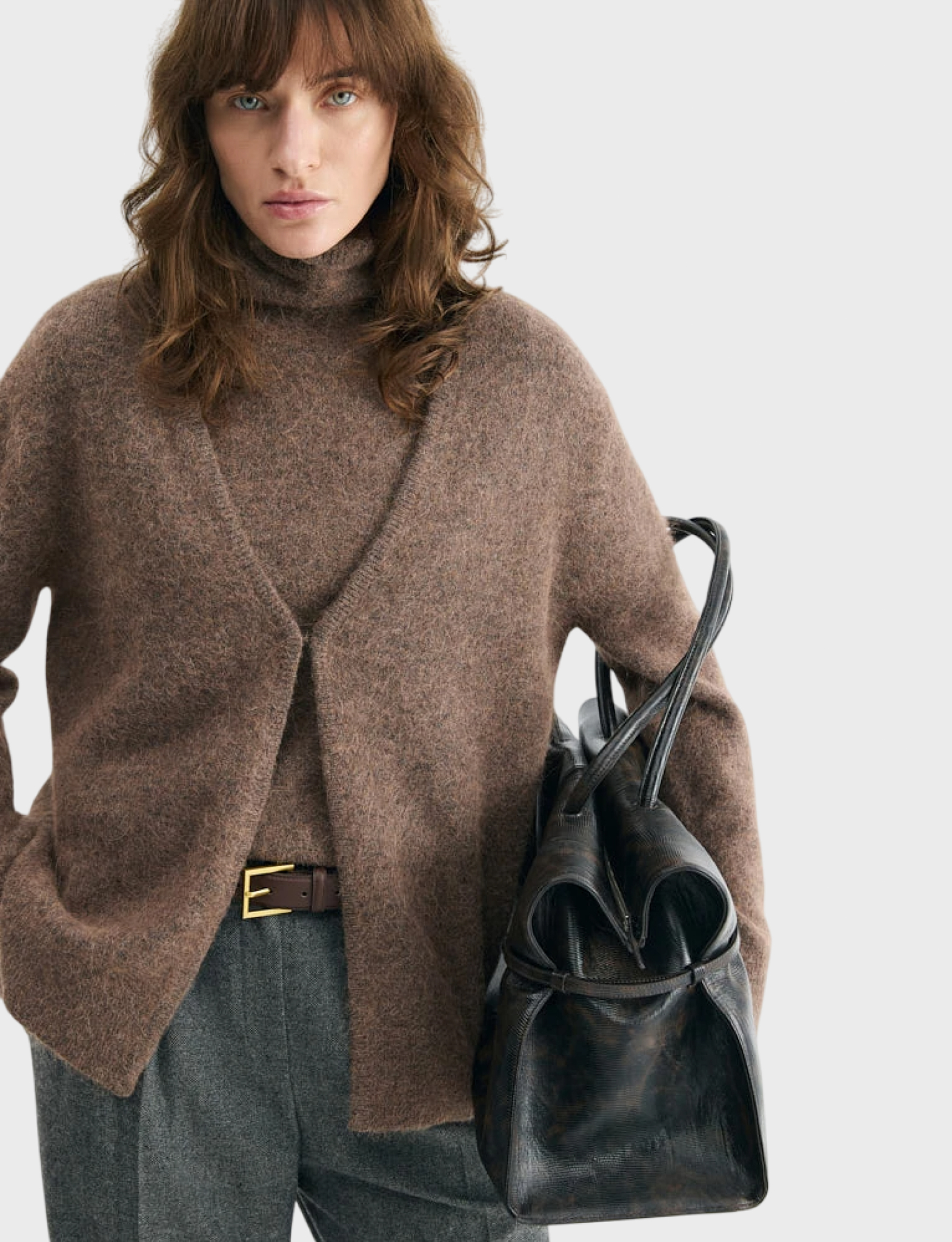 Женский кардиган Daisyknit цвета коричневого – стильное решение для вашего гардероба! Уникальное сочетание материалов (55% альпаки, 24% акрила, 19% нейлона, 2% эластана) обеспечивает мягкость, тепло и комфорт даже в прохладную погоду. Носите его как самостоятельный элемент одежды или комбинируйте с другими вещами, подчеркивая свой индивидуальный стиль.