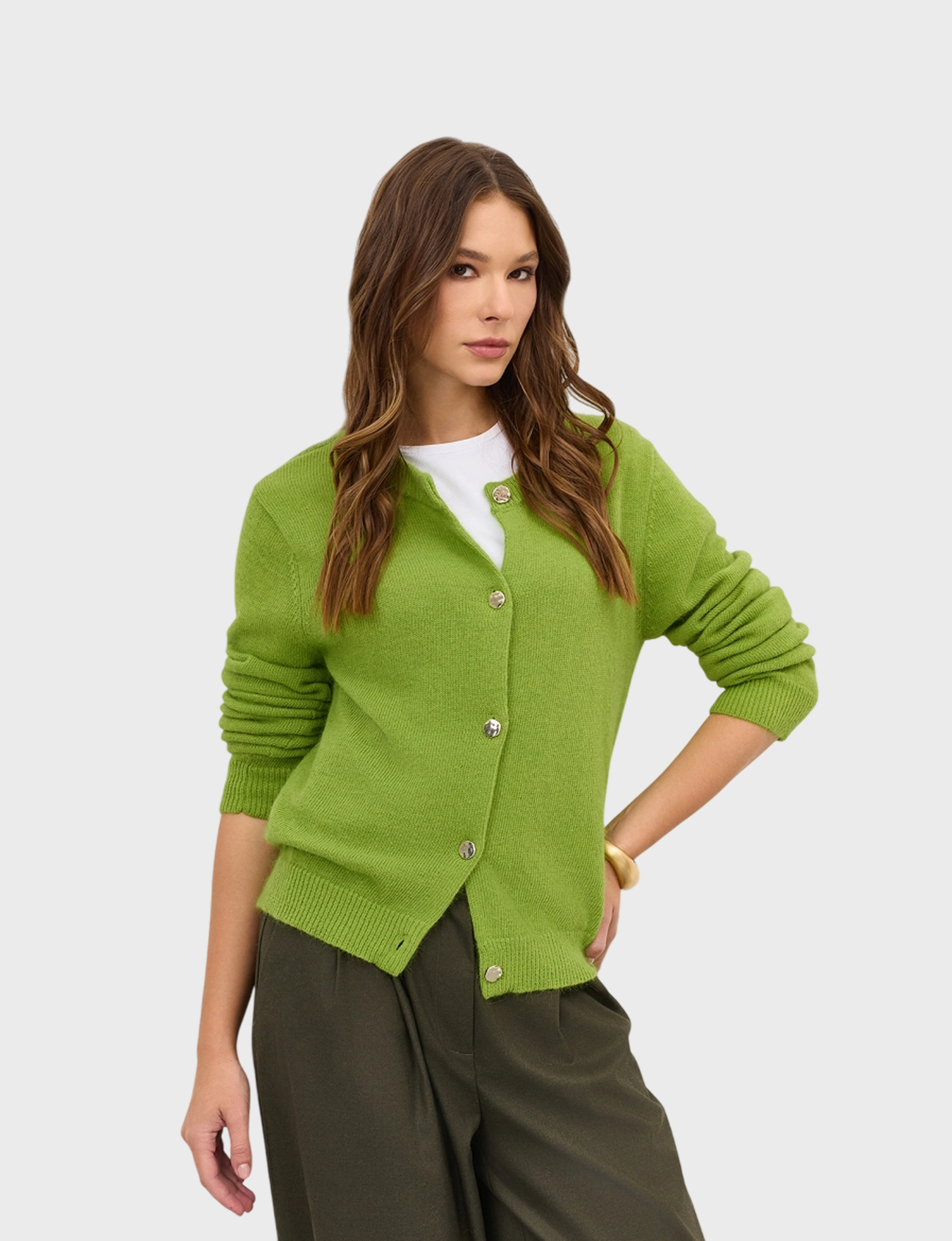 Яркий зелёный оттенок подчеркнёт индивидуальность и придаст уверенности. Комфорт благодаря нежному сочетанию тканей вискозы и нейлона обеспечивают гладкость и долговечность. Ангорка добавляет мягкости. Натуральная шерсть дарит тепло и уют.