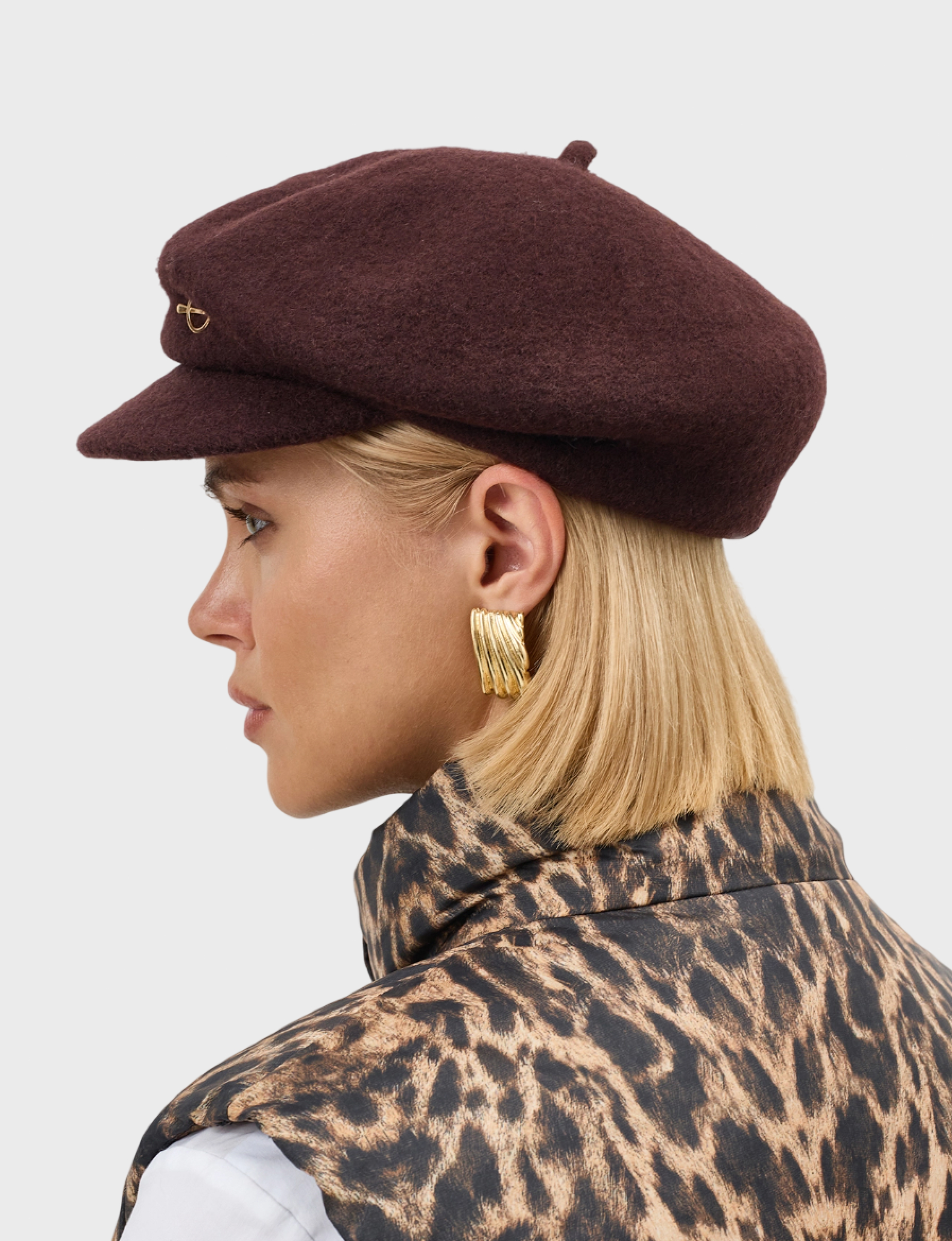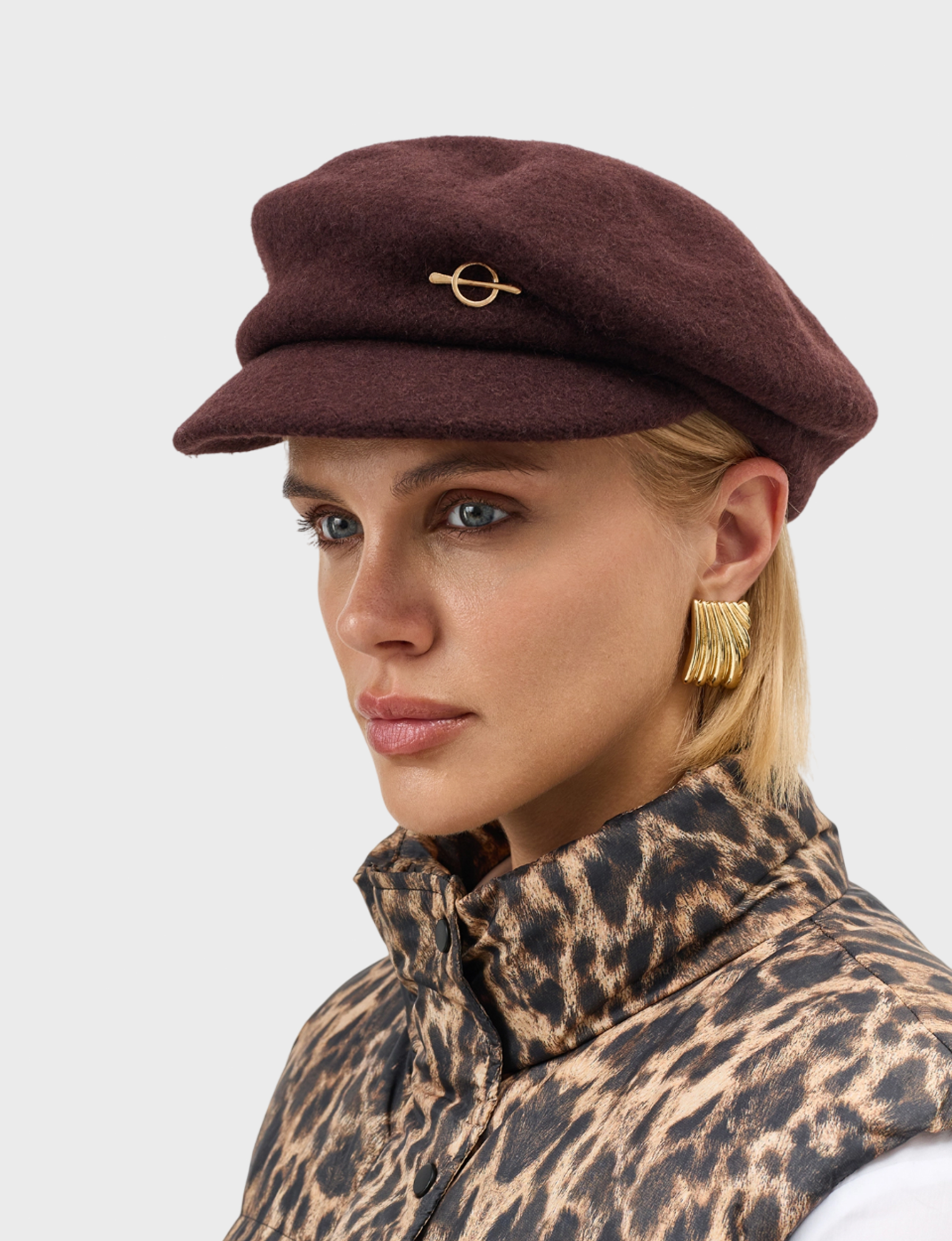 Шерстяное кепи с минималистичным декором. Широкий изогнутый козырек. Риб по внутренней стороне для лучшей фиксации и регулировки размера.