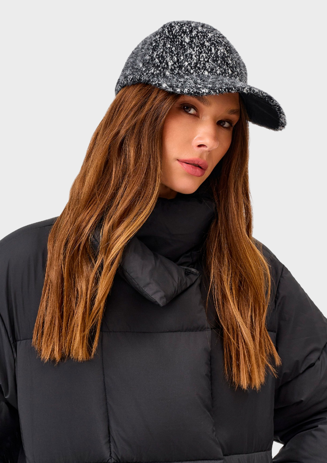 Кепка из фактурного материала с эффектом вязки. Широкий изогнутый козырек. Фиксация и регулировка металлической пряжкой.