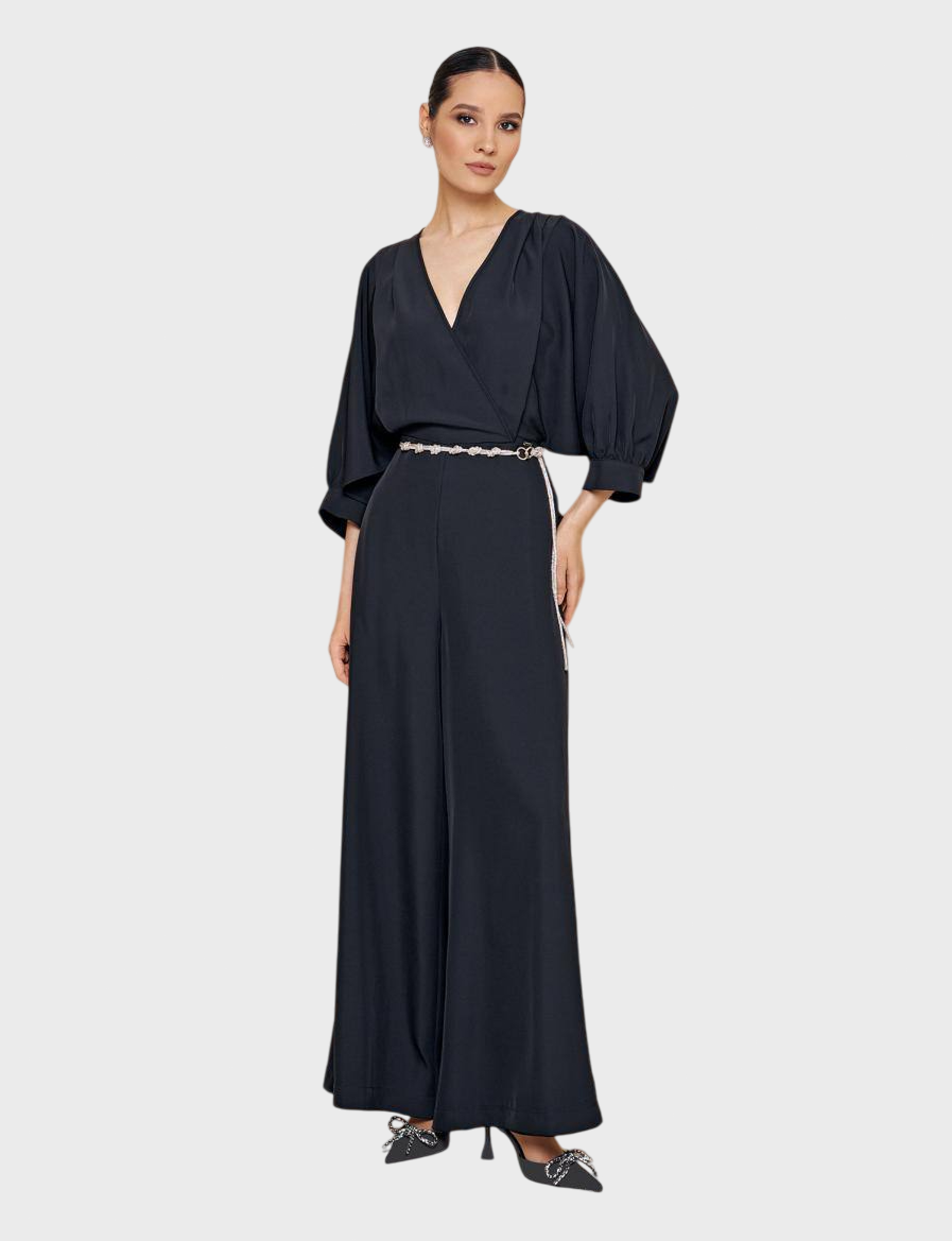 Комбинезон NOCHE MIO – это воплощение женственности и элегантности! Черный цвет придает образу строгость и утонченность, идеально подойдет как для вечернего выхода, так и повседневного ношения.