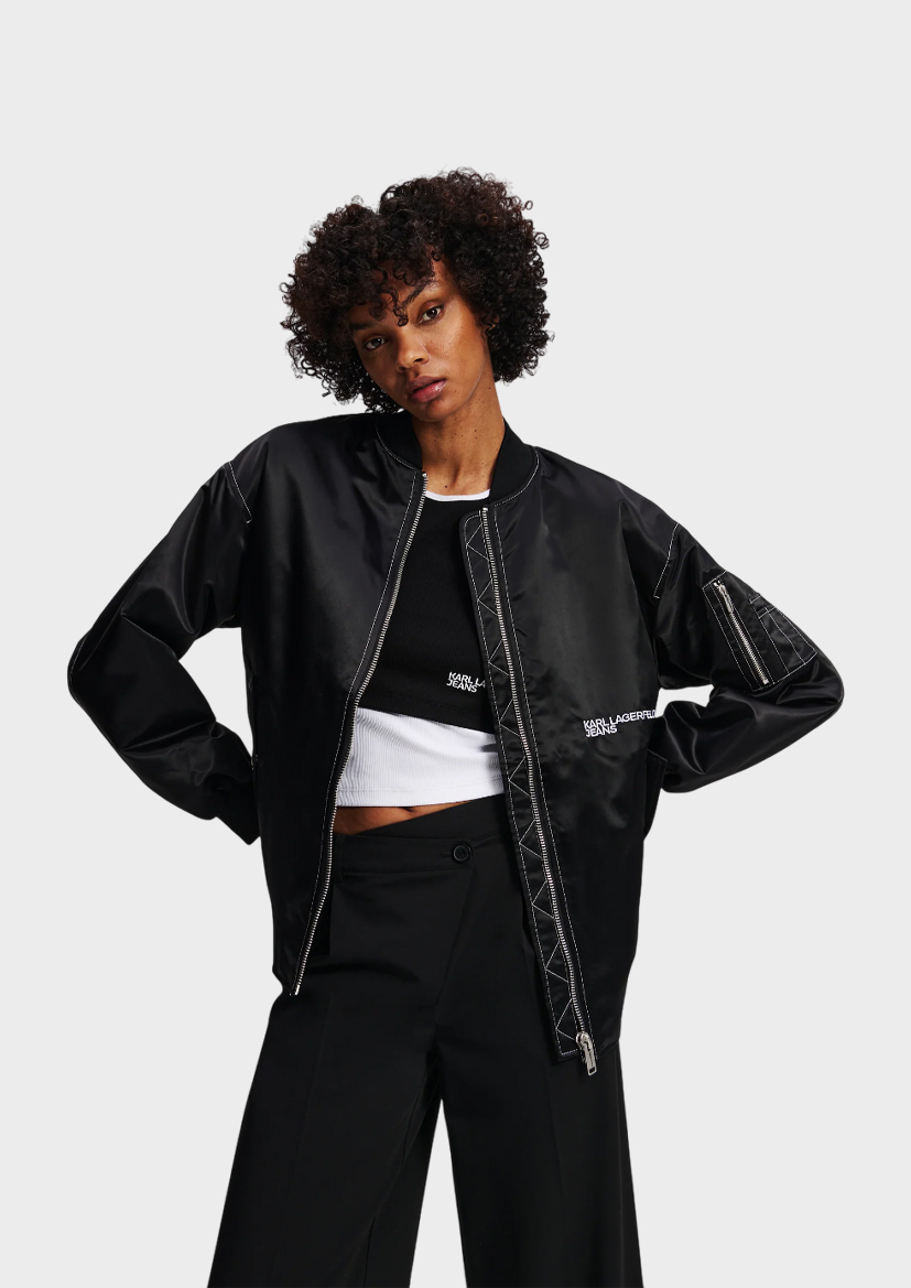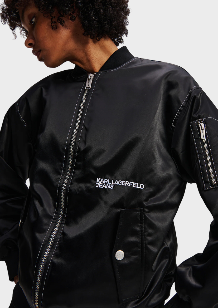 Черная куртка-бомбер от бренда Karl Lagerfeld. Элегантность дизайна подчеркнет ваш статус и безупречный вкус. Идеально сочетается как с повседневными образами, так и добавляет нотку роскоши вечерним нарядам. Вещь, которая обязательно станет вашим фаворитом!
