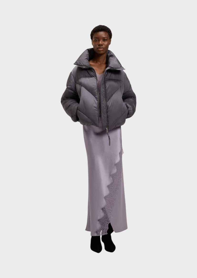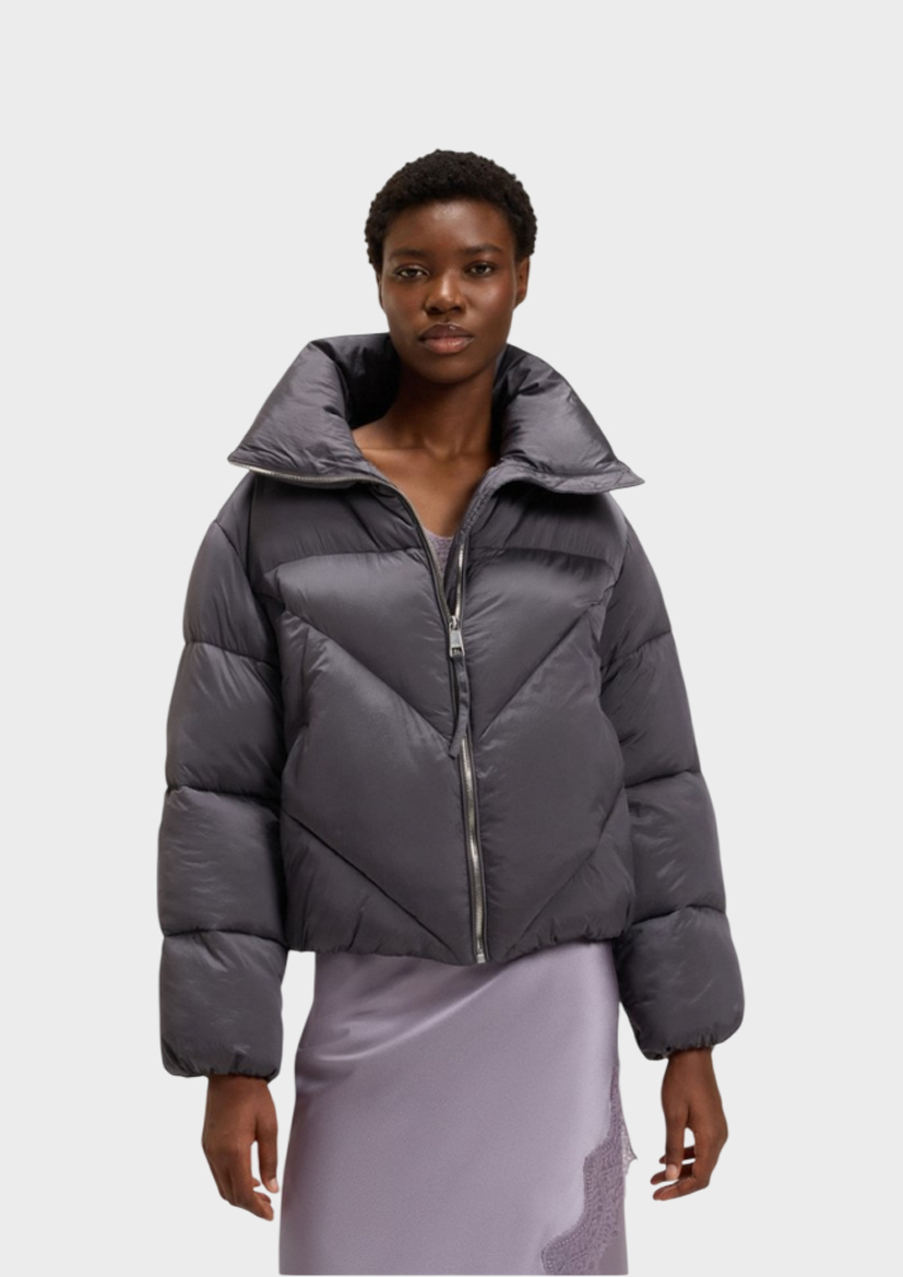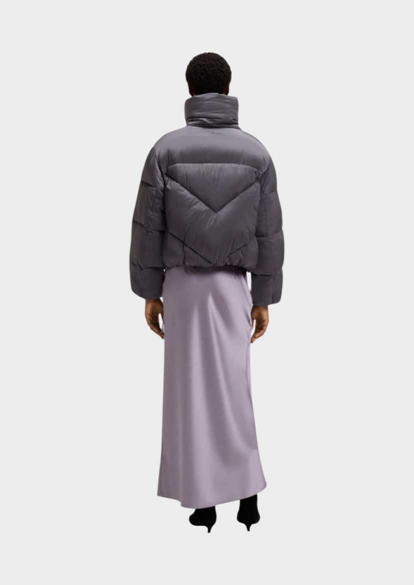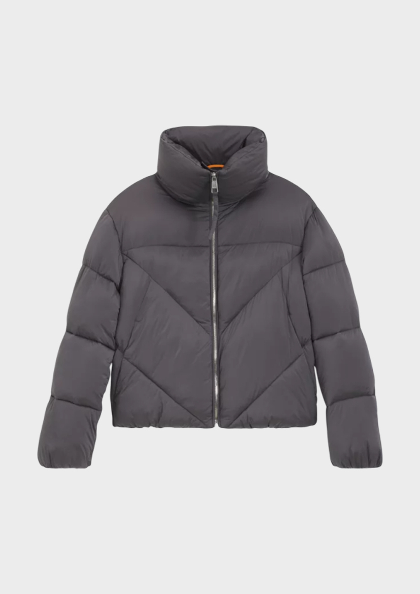 Куртка-пуховик на молнии BOSS из блестящей стеганой ткани. Вышитый логотип в тон. Карманы из флиса. Застежка-молния.