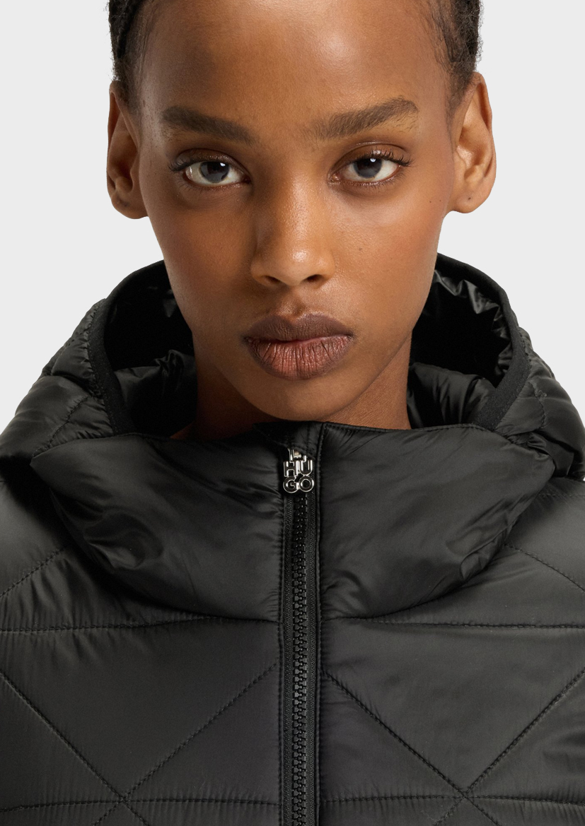 В этой куртке HUGO с капюшоном вы всегда будете в комфорте. Она обработана водоотталкивающим покрытием и простегана современным треугольным узором. В состав этого изделия частично входит переработанный пластик.