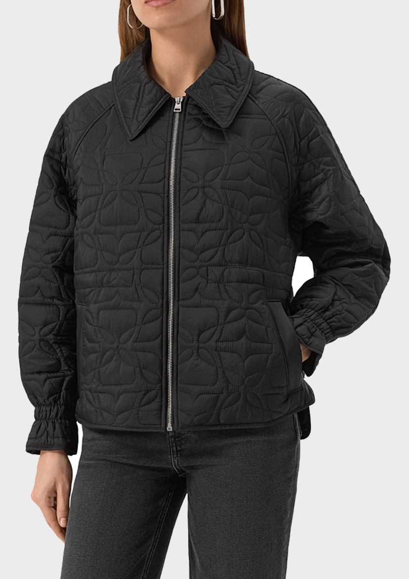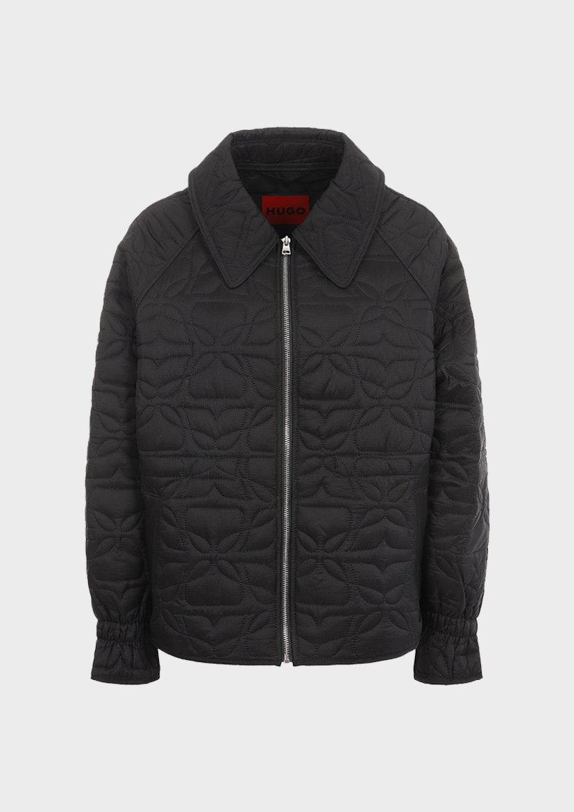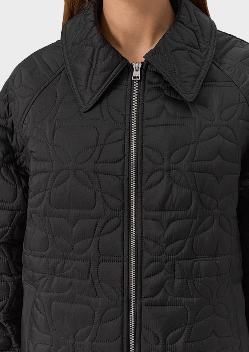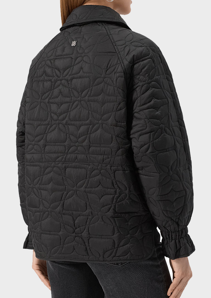 Утепленная куртка с рукавами реглан и потайным поясом-кулиской сшита из полиамида. Стеганая модель с эластичными манжетами и двумя врезными карманами украшена логотипом марки сзади.