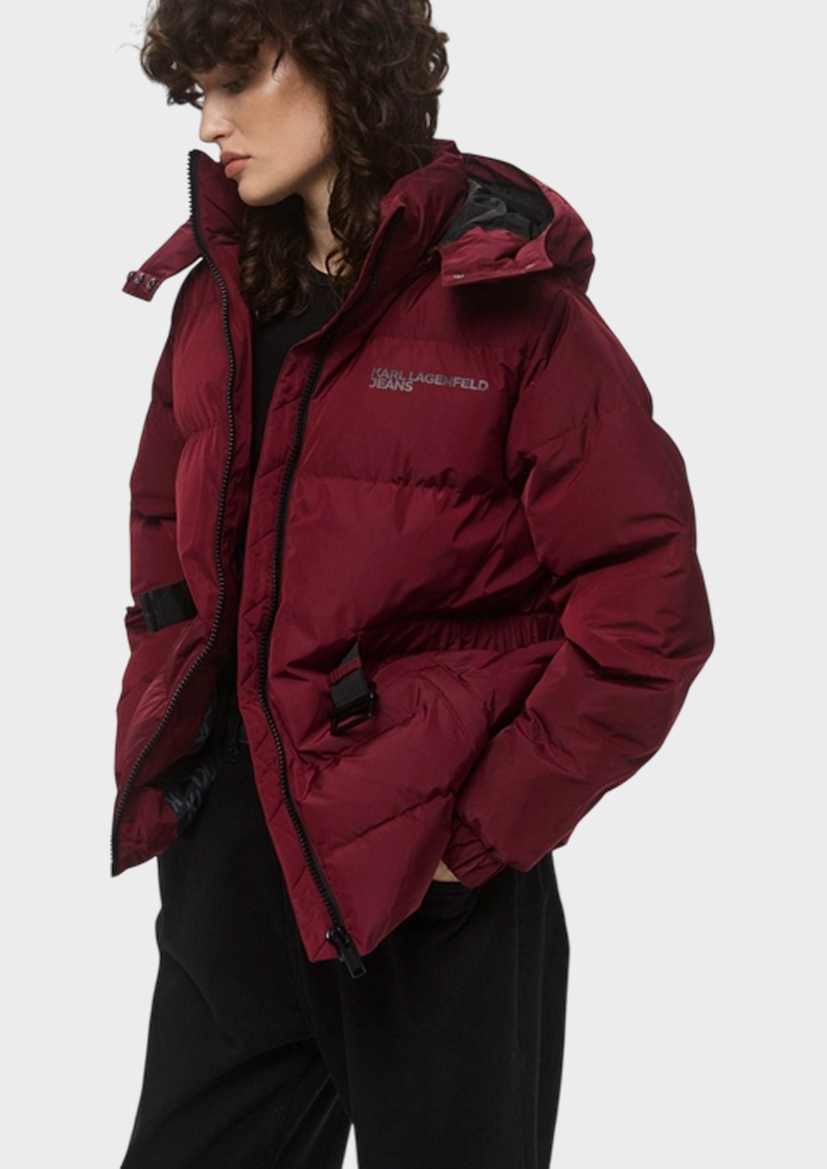 Стильная женская куртка бренда Karl Lagerfeld из переработанного полиэстера! В модном бордовом цвете с эффектным поясом, в котором вы будете выглядеть потрясающе. Стильный выбор для современных девушек, ценящих комфорт и трендовые решения!