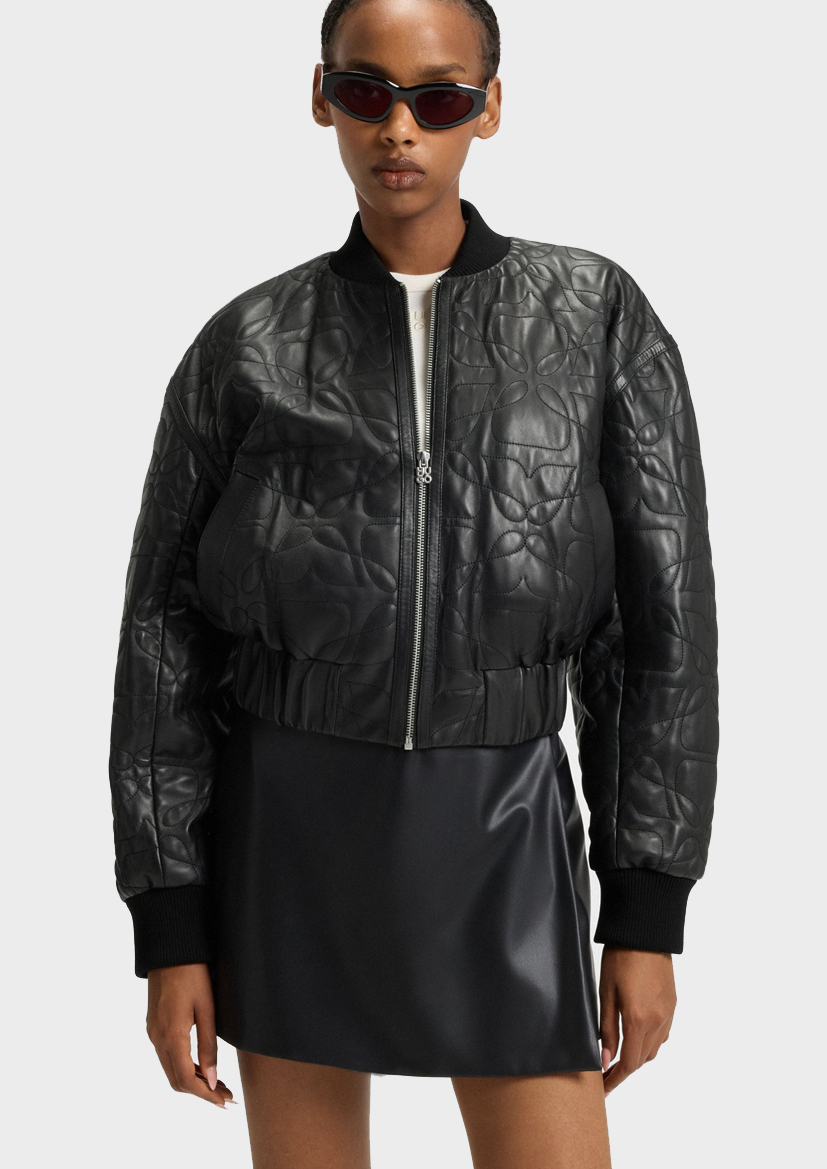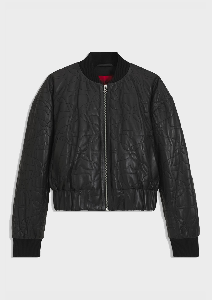 Эта женская куртка от HUGO, выполненная в стиле бомбер с подкладкой, украшена креативным стеганым рисунком, подчеркивающим женственность. Выполнена из мягкой кожи. Свободный крой.