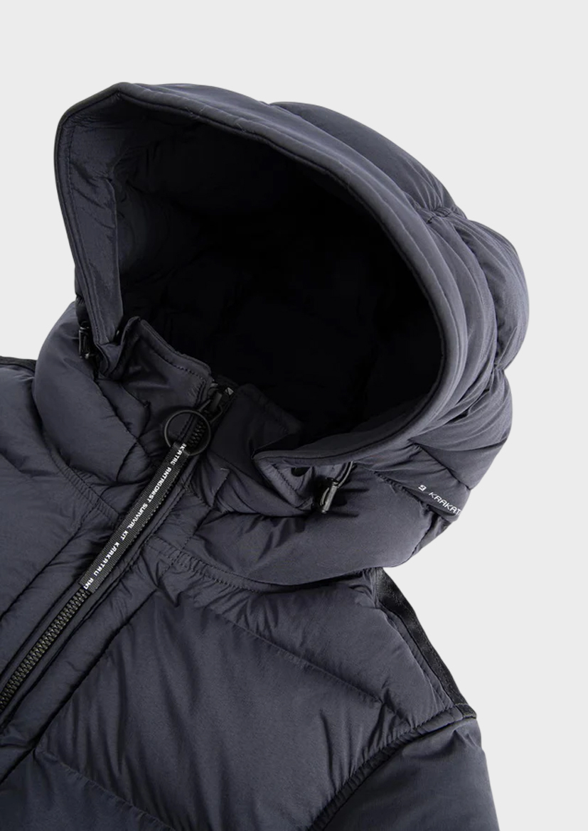 Куртка ROOK из плотной ветрозащитной ткани. Утеплитель держит тепло, не сбивается и не боится влаги — подходит для активных прогулок. Глубокий капюшон с ветрозащитной горловиной, эластичные детали и карманы на молнии — надёжная защита на всю зиму.