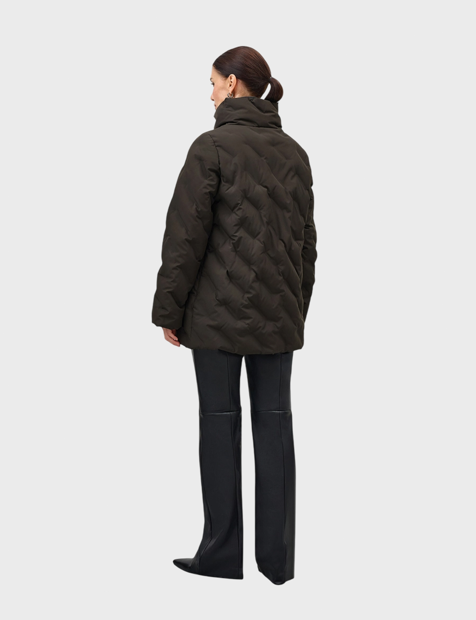 Воплощение женственности тёмно-зелёным оттенком и современным дизайном. Наполнитель из 100%-го полиэстера обеспечивает тепло даже в холодную погоду, а водоотталкивающий материал верха подарит комфорт при любой погоде.