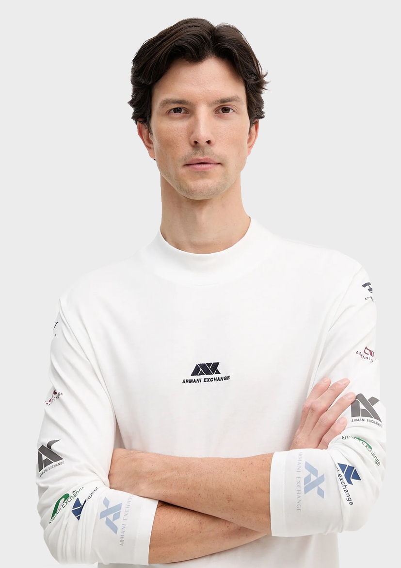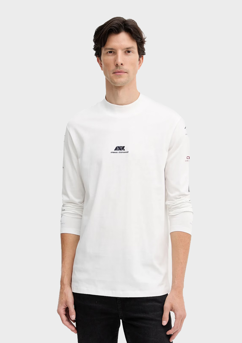 Мужской лонгслив Armani Exchange белого цвета – стильный выбор для вашего гардероба! Изготовлен из качественного 100% хлопка, который обеспечивает комфорт при носке и сохраняет форму после стирки. Брендовый дизайн подчеркивает ваш безупречный вкус. Идеален как самостоятельный элемент одежды или базовый слой под куртку – универсальность делает его незаменимым элементом мужского стиля.