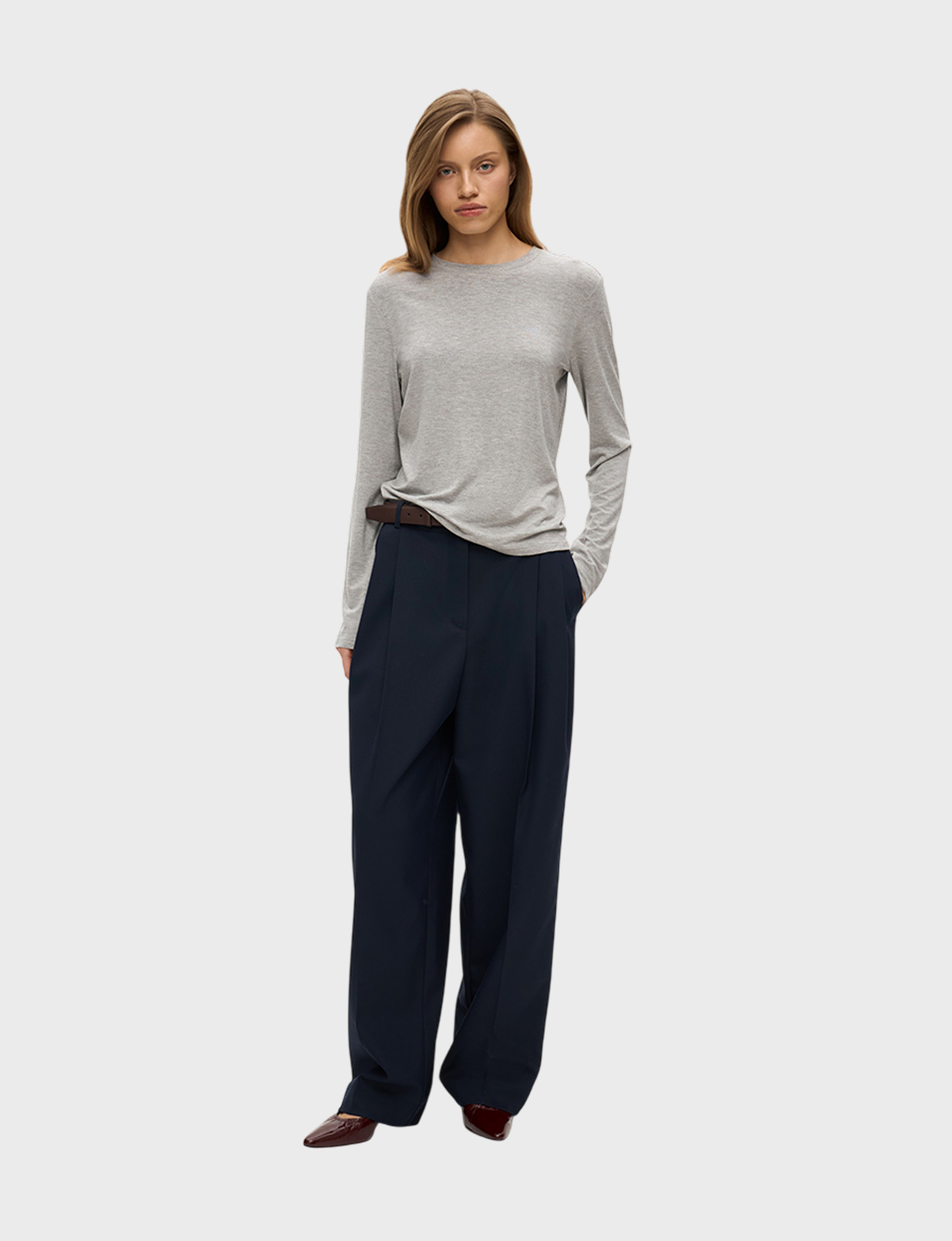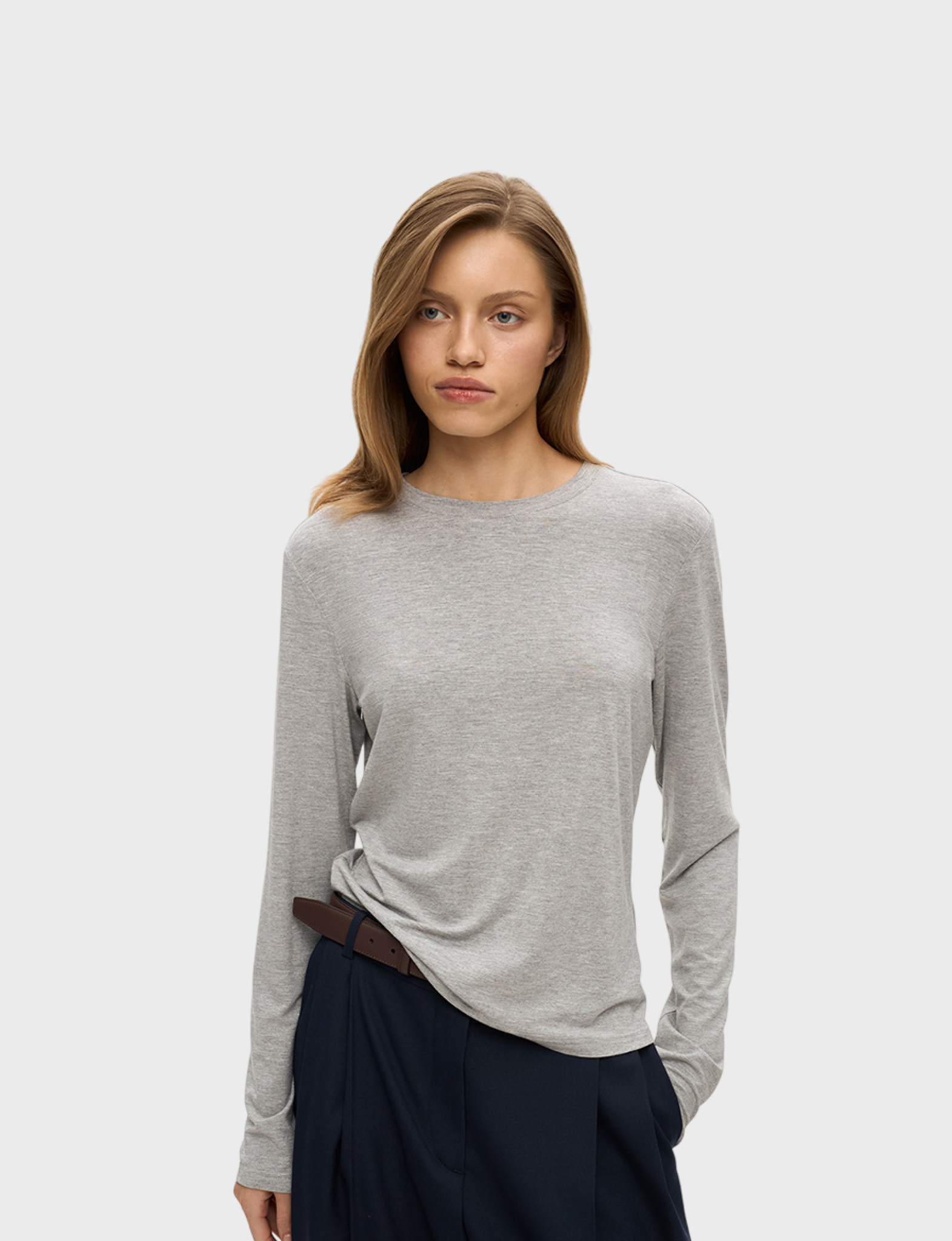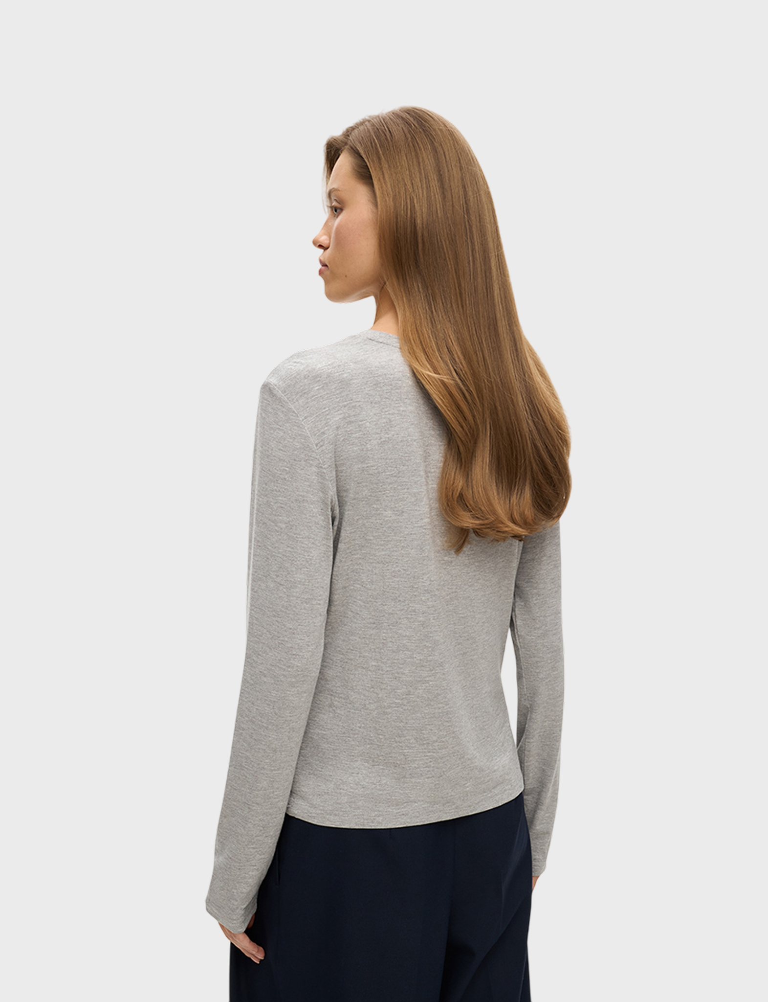 Лонгслив из деликатного тонкого трикотажа прилегающего силуэта. Материал воздухопроницаемый, приятный к телу. Модель с круглой горловиной и удлиненным рукавом. Лонгслив идеально подойдет для создания комфортного образа.