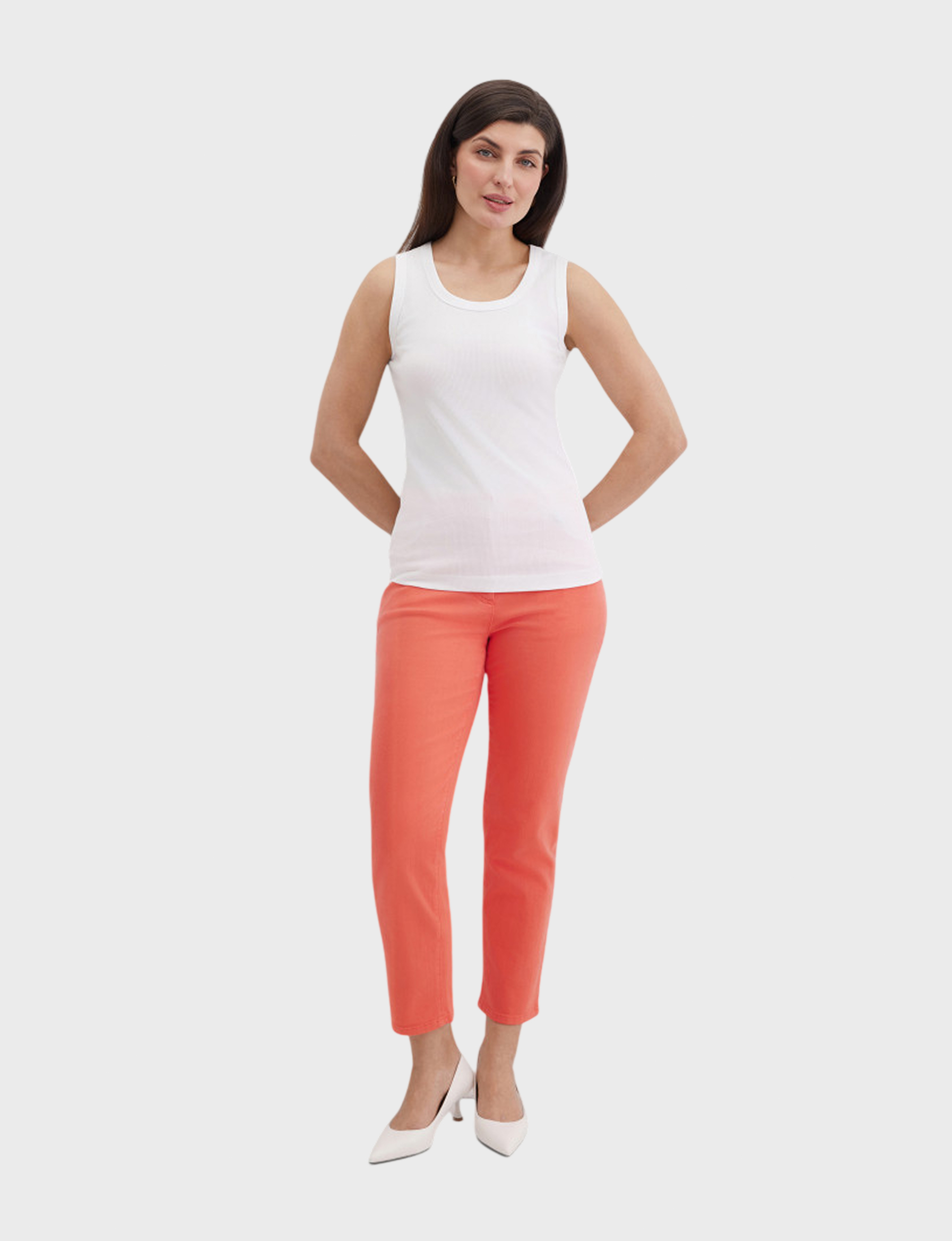 Белая майка от легендарного бренда GERRY WEBER – комфорт и стиль в каждой детали! Прочный хлопковый трикотаж с добавлением мягкого модала обеспечивает нежное прикосновение к коже, а эластин придает изделию идеальную посадку по фигуре.