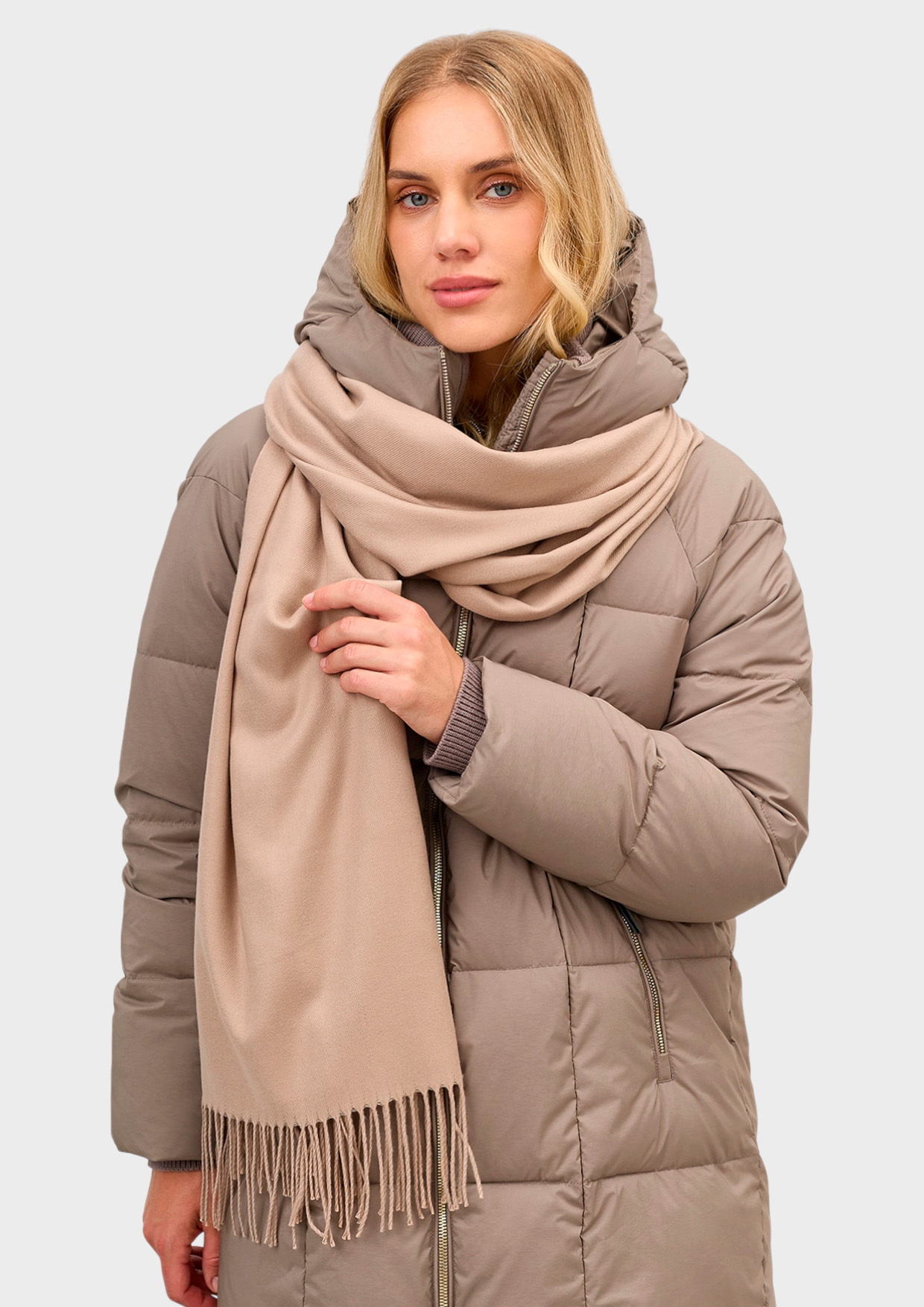 Тонкий объёмный палантин с бахромой по краям. Прямоугольная форма.