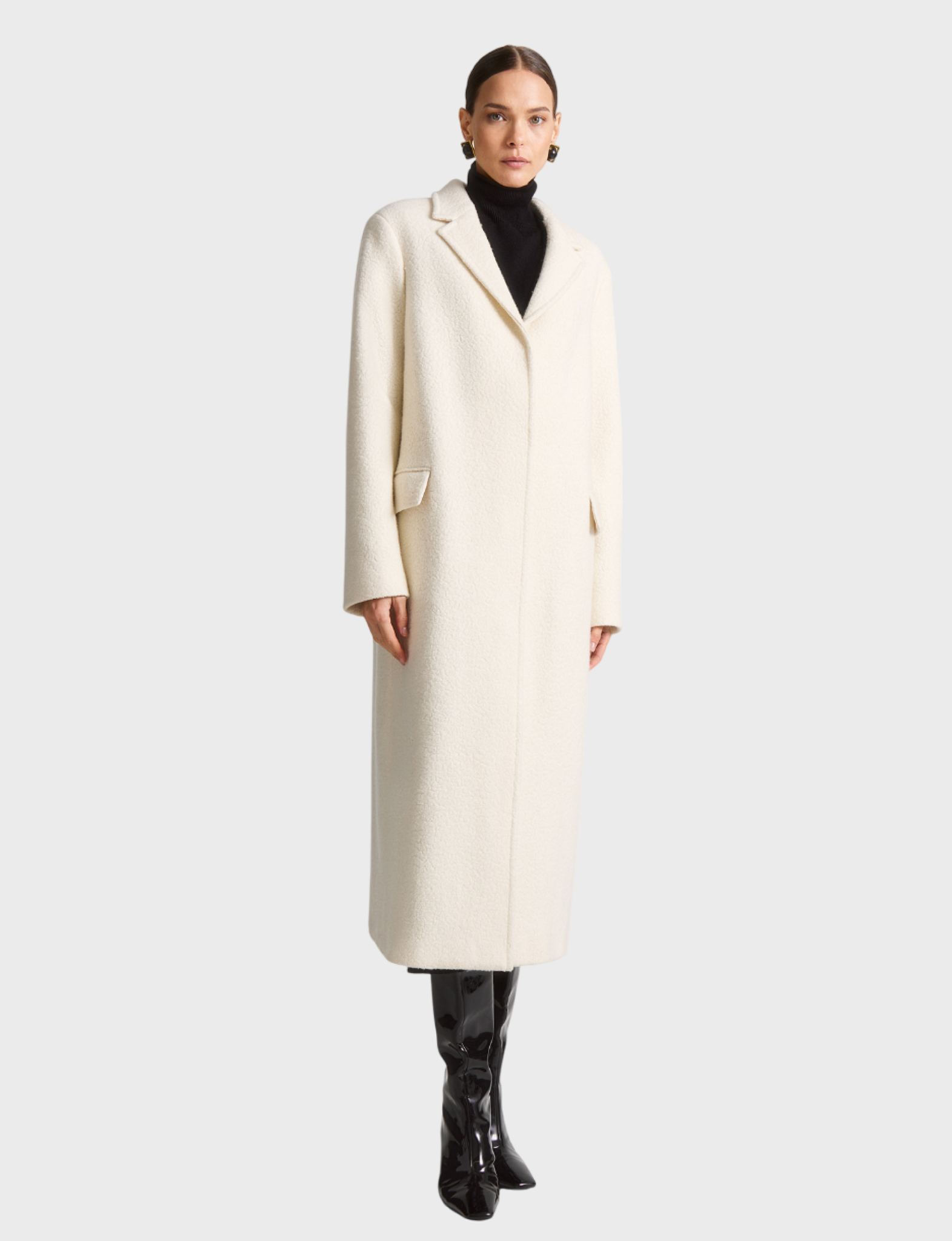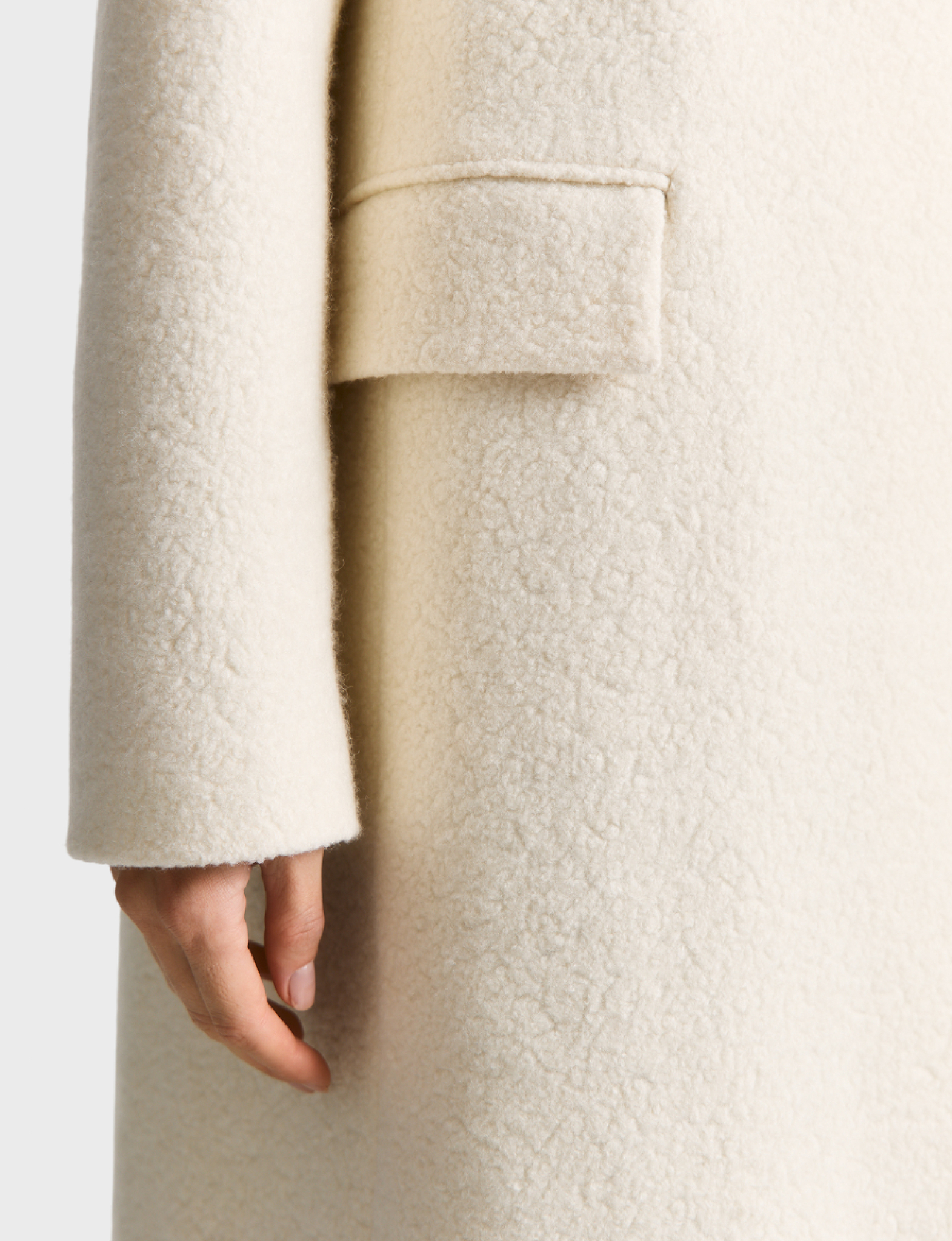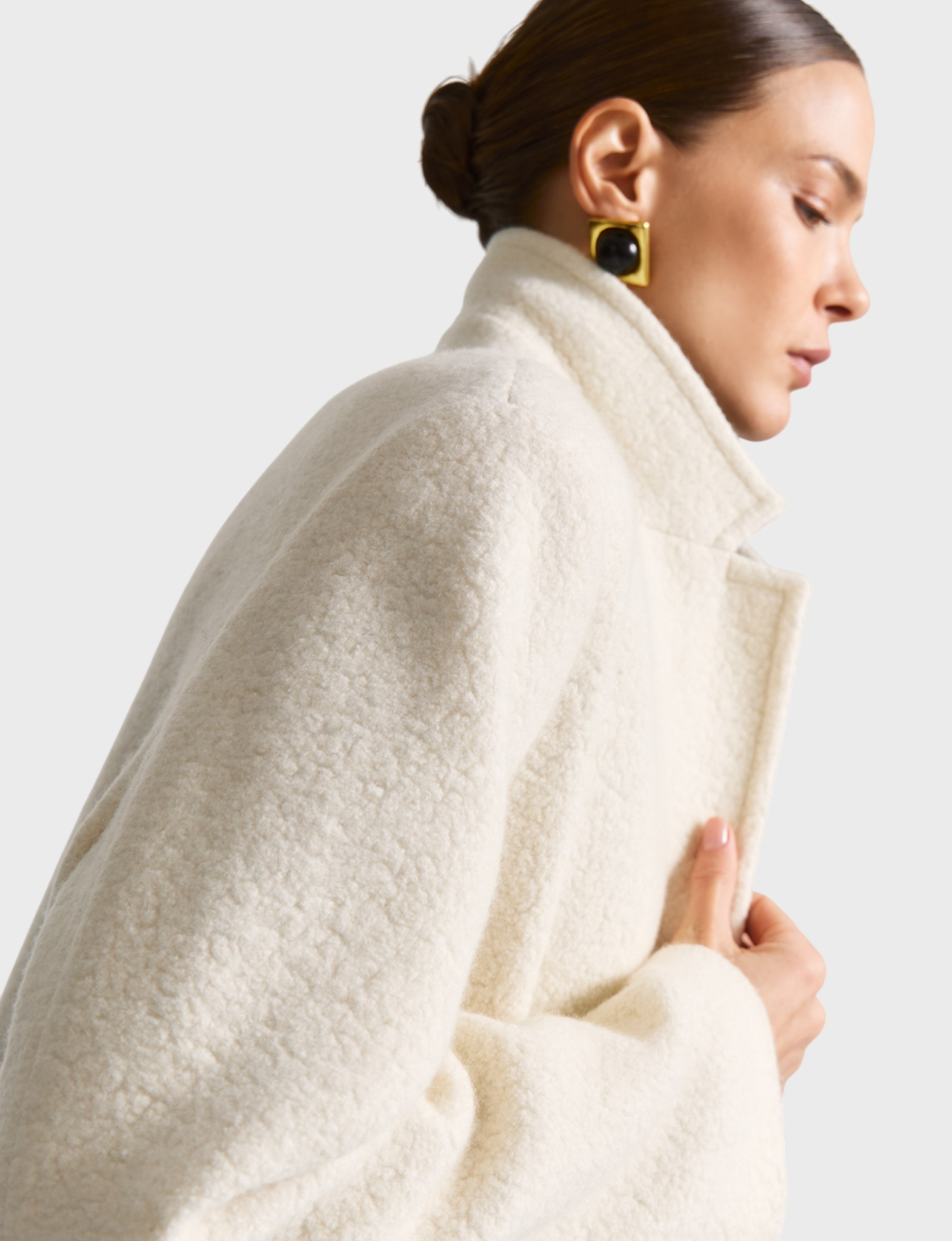 Женское пальто ELIS молочного цвета – ваш идеальный спутник в прохладную погоду! Эксклюзивный состав из 60% шерсти гарантирует комфортное тепло и нежность к телу, а добавки эластана (8%) и полиамида (32%) обеспечивают прочность и сохранение формы модели надолго.