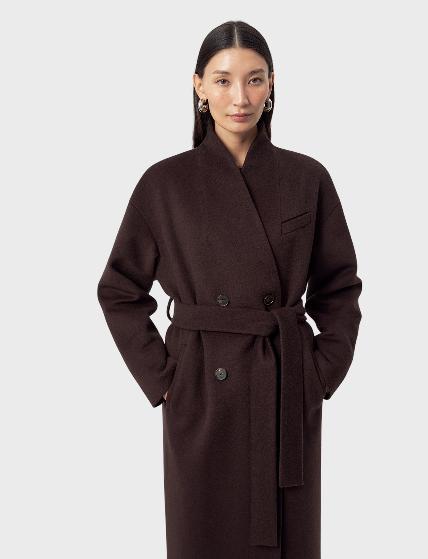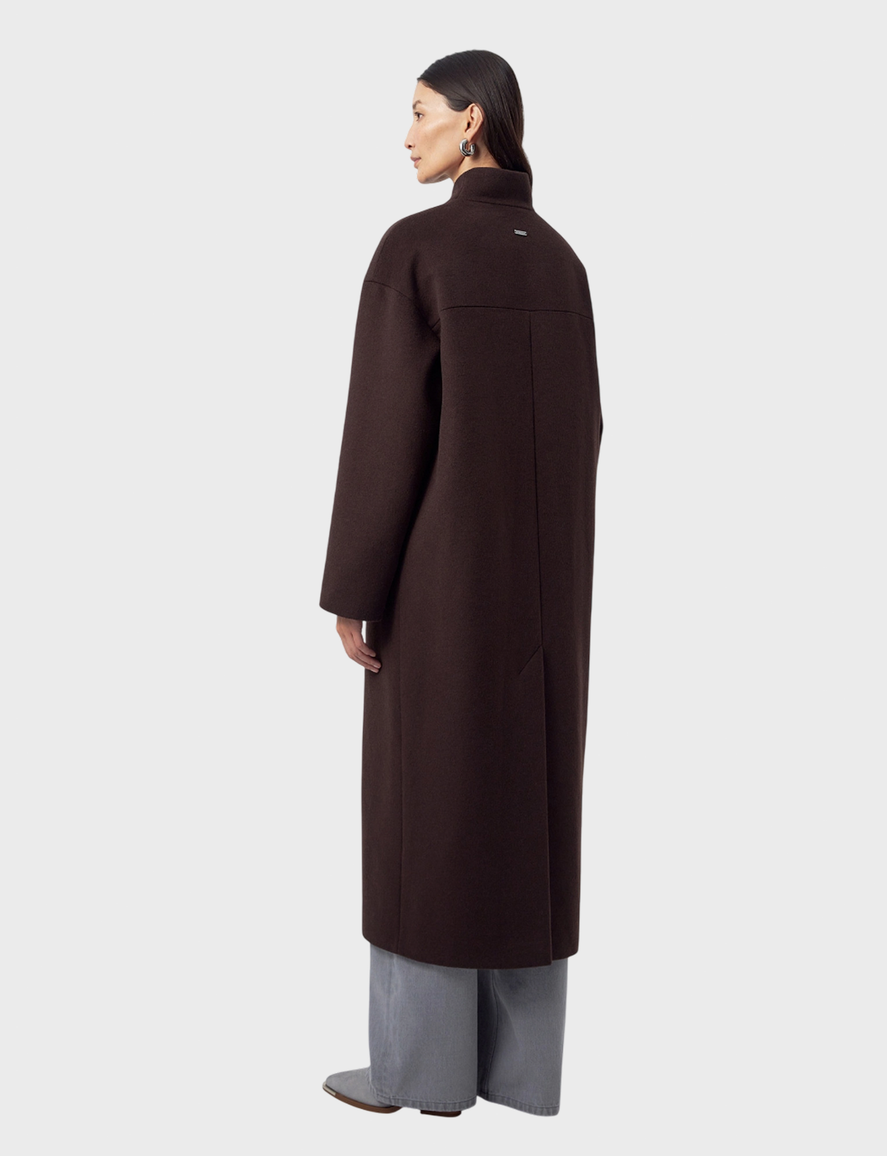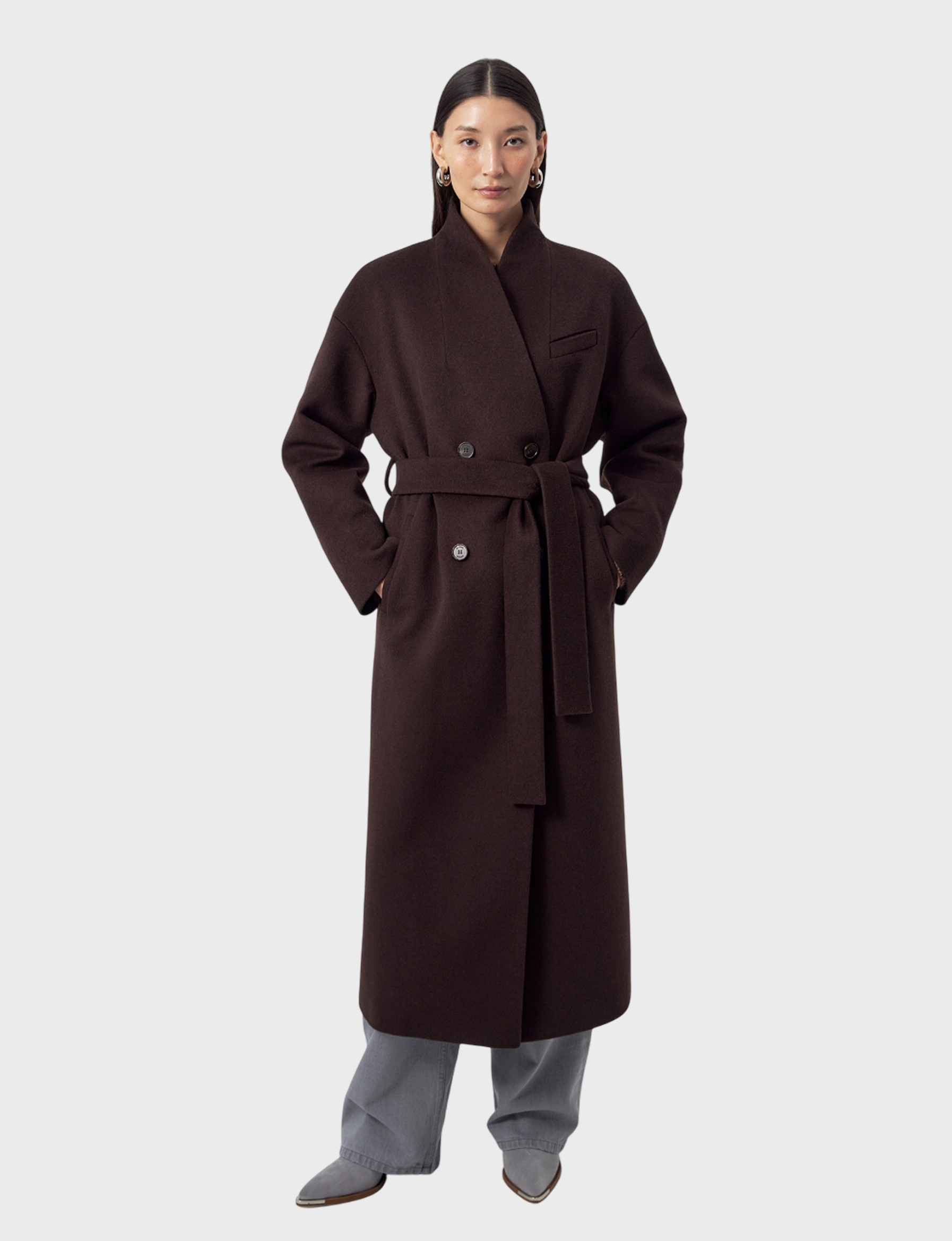 Тёплое женское пальто Pompа цвета тёмной осени – ваш стильный спутник в прохладное время года! Шикарная ткань из 60% шерсти гарантирует комфорт и тепло, а современные добавки эласта и полиэстера обеспечивают идеальную посадку по фигуре и продлевают срок службы одежды. Элегантность, практичность и уют – всё это сочетается в каждой детали вашего нового образа.