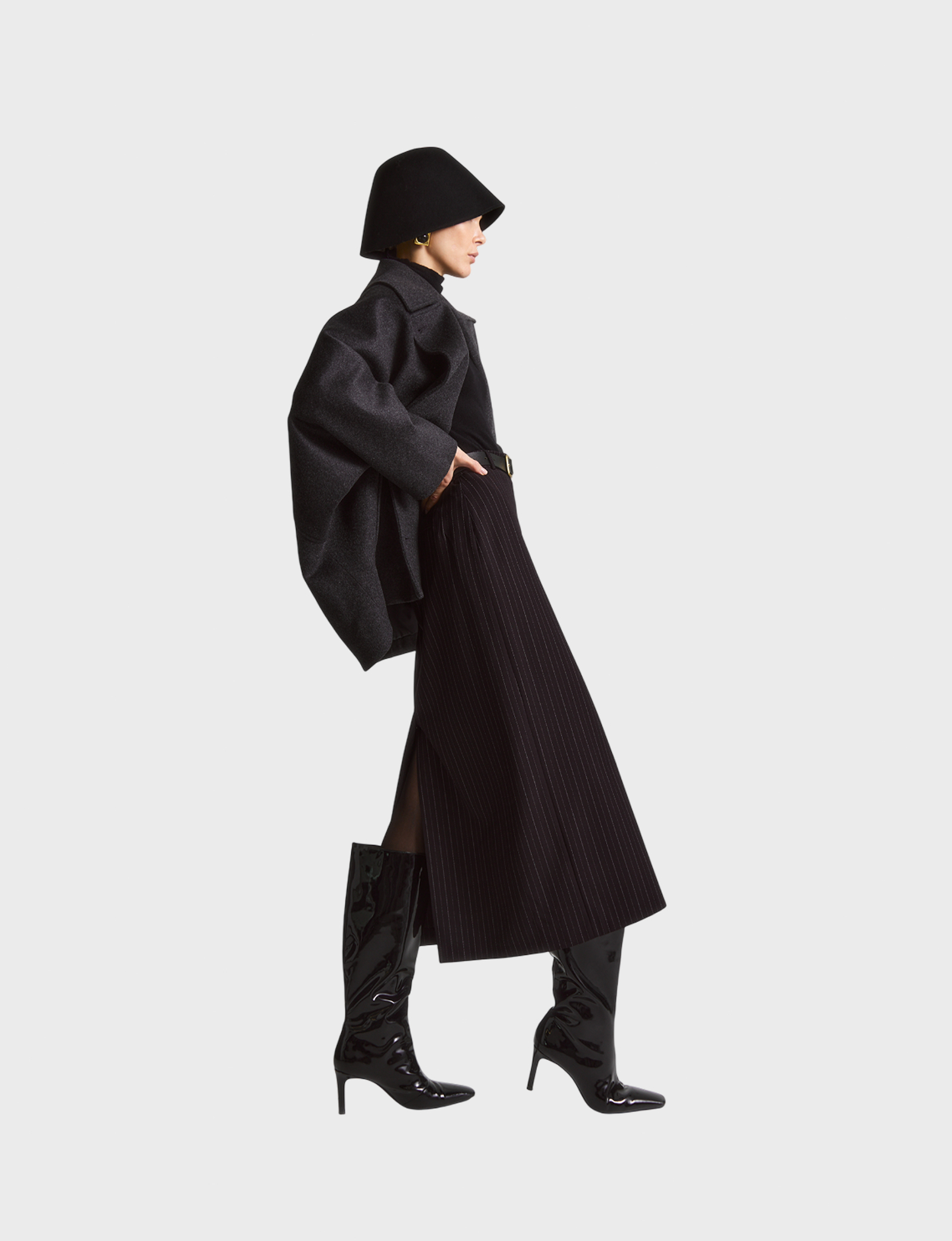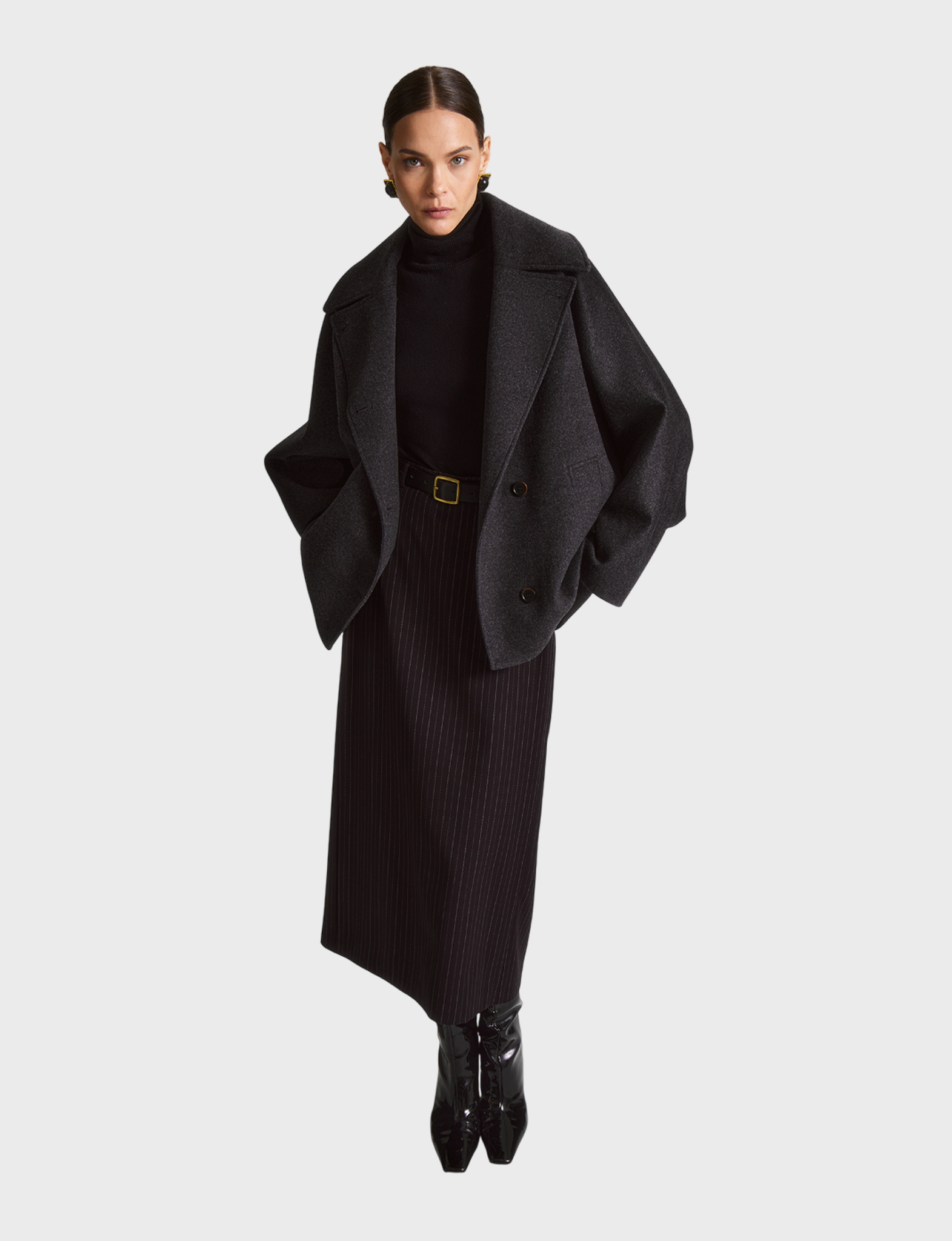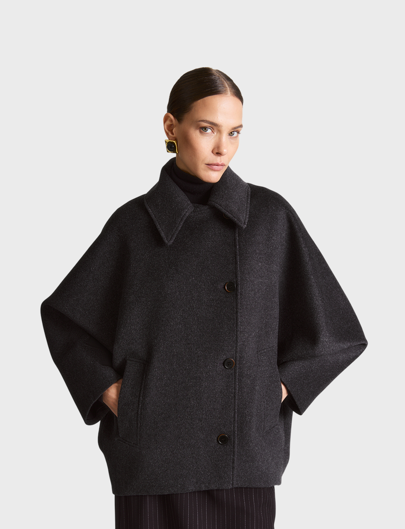 Это стильное изделие из 100%-й шерсти подарит комфорт даже в прохладную погоду, подчеркнув вашу индивидуальность тёмно-серым оттенком. Элегантная длина позволяет легко комбинировать пальто с любым образом от джинсов до юбок.