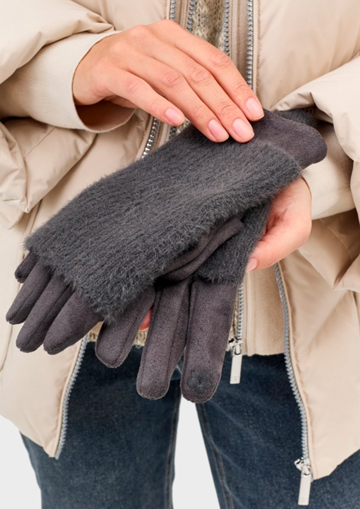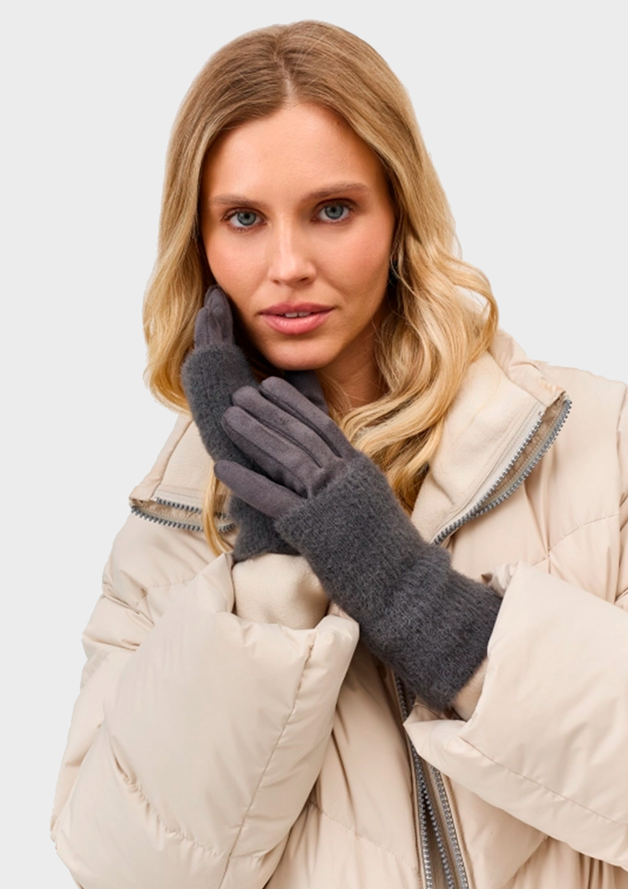 Перчатки из трикотажной замши с вязаными митенками в комплекте. Можно носить отдельно. Теплая текстильная подкладка. Используется технология iTouch, она создана специально для работы с сенсорными экранами. Благодаря этому не нужно снимать перчатки , чтобы ответить на звонок или написать сообщение.
