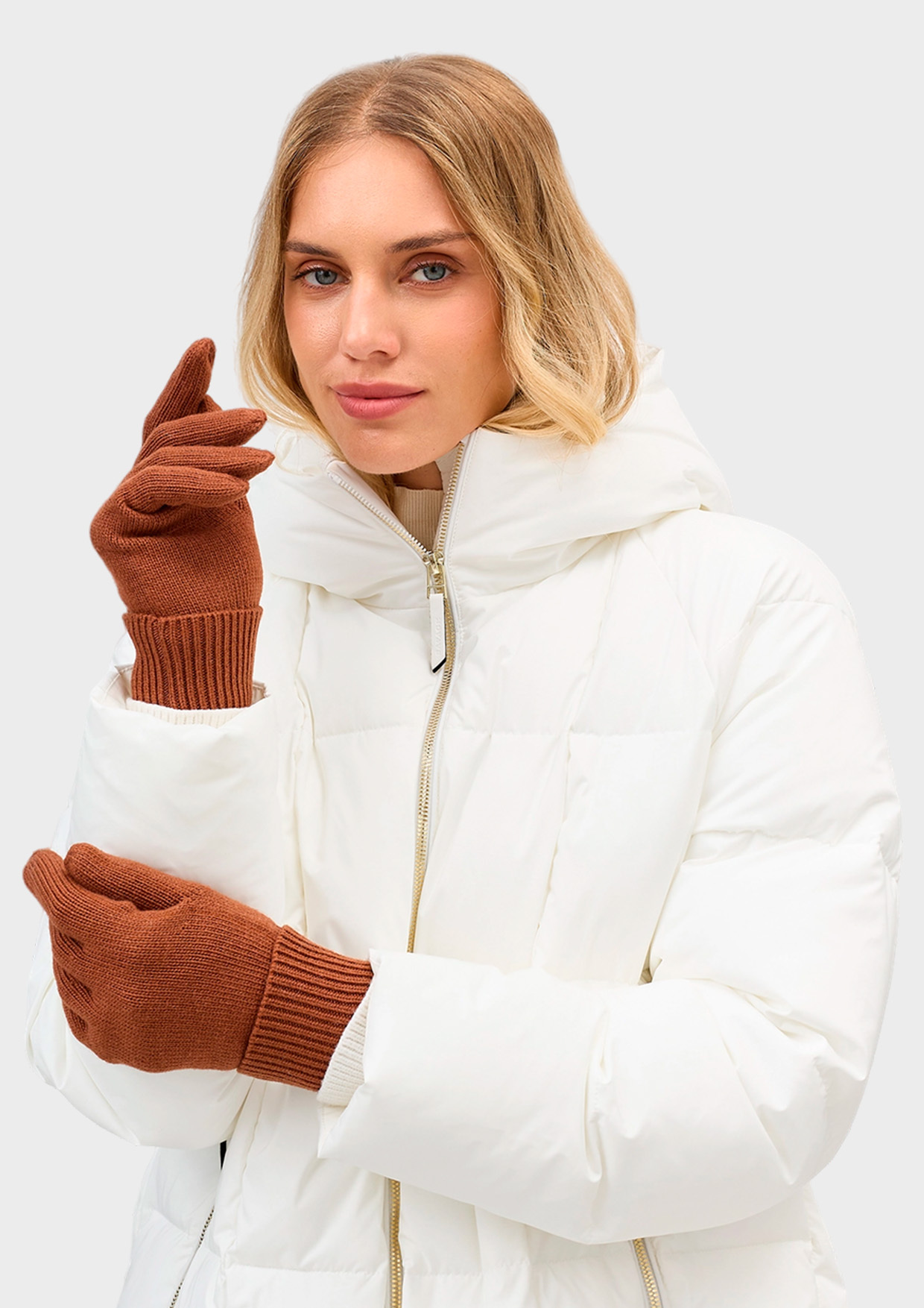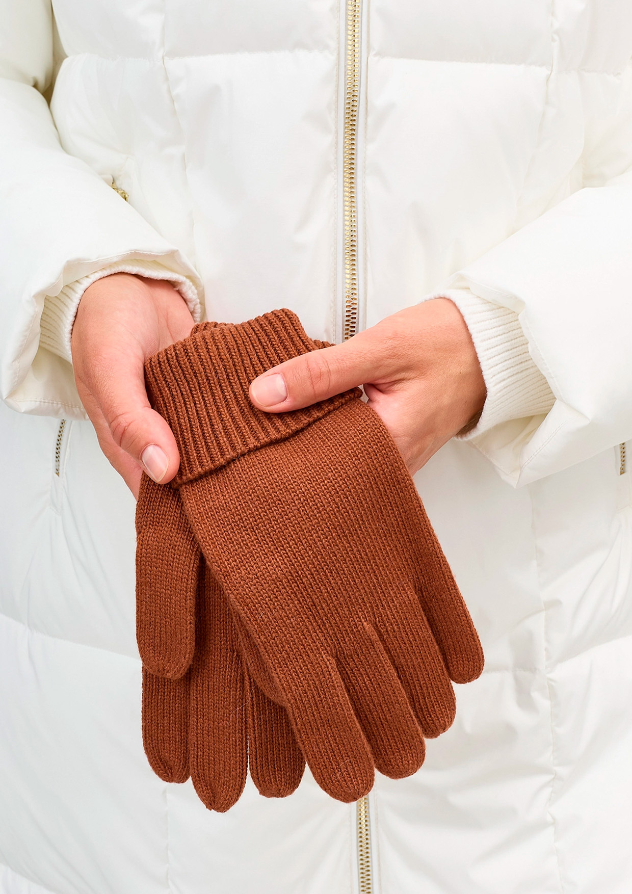 Теплые вязаные перчатки с шерстью и вискозой в составе. Плотно держатся на запястье благодаря отворотам-манжетам.