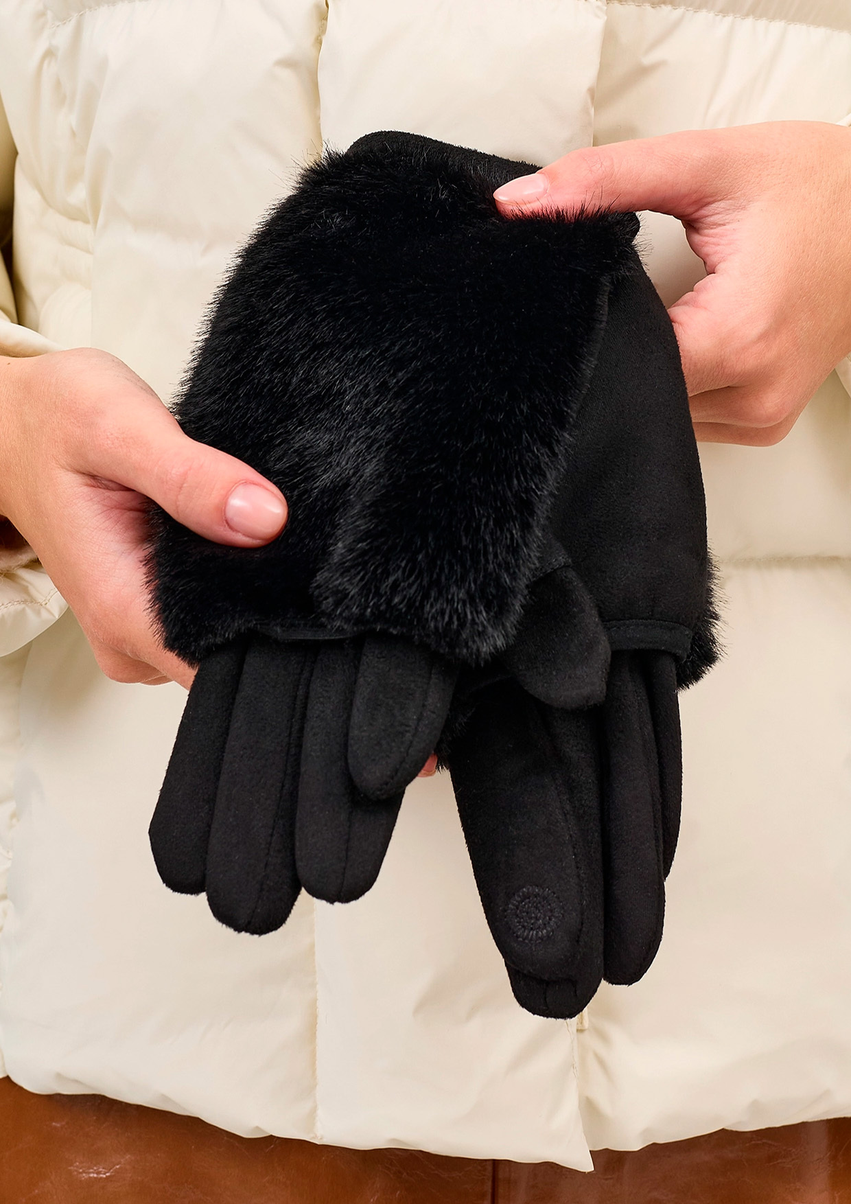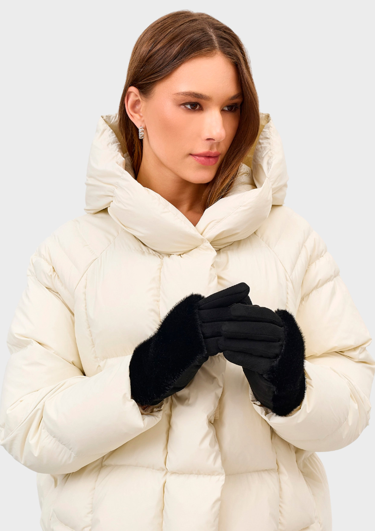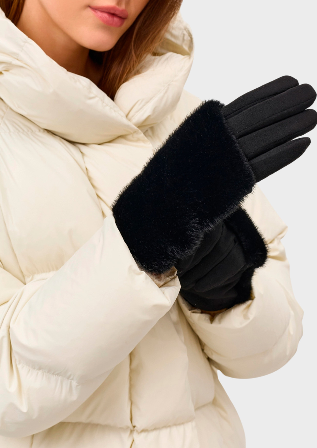 Женские перчатки с меховыми митенками сделаны из мягкого трикотажного материала с добавлением спандекса, они обеспечивают комфорт и тепло, а ворсистая фактура придает им уютный вид. Удобные сенсорные перчатки с технологией I Touch позволяют пользоваться смартфоном без необходимости снимать их.