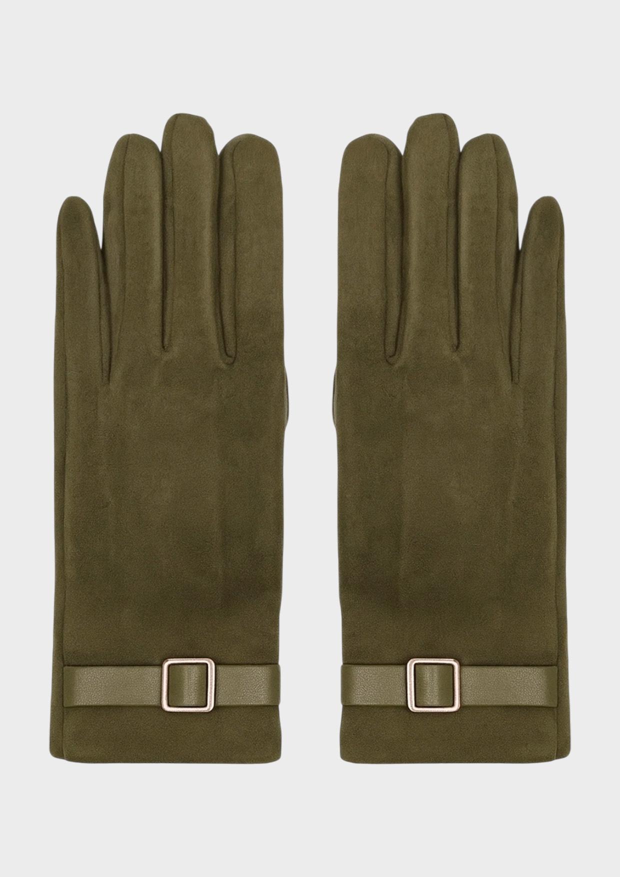 Перчатки из искусственной замши с декоративным хлястиком и пряжкой. Внешняя сторона дополнена искусственным мехом в цвет. Теплая текстильная подкладка. Используется технология iTouch, она создана специально для работы с сенсорными экранами.