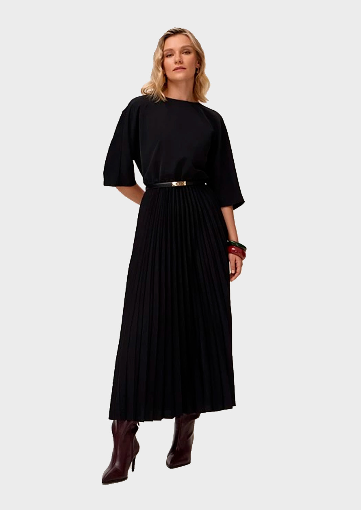 Модель выполнена из супер-эластичной костюмной вискозной ткани, она формоустойчива, долговечна и воздухопроницаема. Выбранный для платья элегантный и лаконичный классический черный дает неограниченные возможности для создания образов самой разной стилистики.